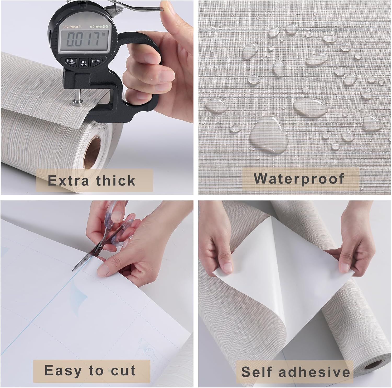 - FEATURES--Vinyl/pvc material. Thicker than normal wallpaper, full of real texture,self adhesive, easy to apply. Waterproof . Indoor use, ideal for most smooth flat surfaces such as bedroom,living room,cabinets,furniture,etc.