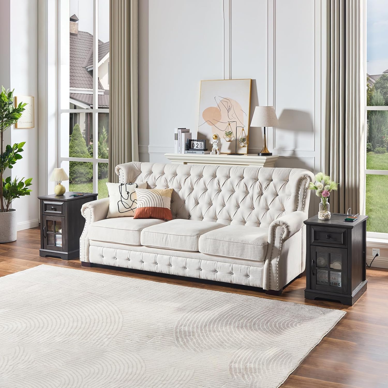 - đăSide Table with Charging StationăLow battery? Don't worry. This end table comes with 2 AC outlets, 2 USB ports and a 6.56ft power cord for your charging needs. You can easily charge mobile phones and other devices as you need. Faster charging efficiency, stabler charging and no damage to your devices!