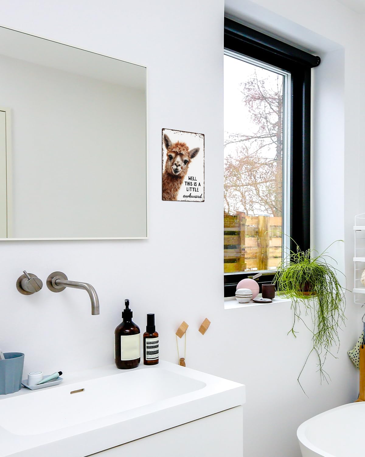 ALKB Funny Alpaca Metal Signs Farmhouse Bathroom Wall Decor Alpaca Lovers Gift 8 x 12 Inch