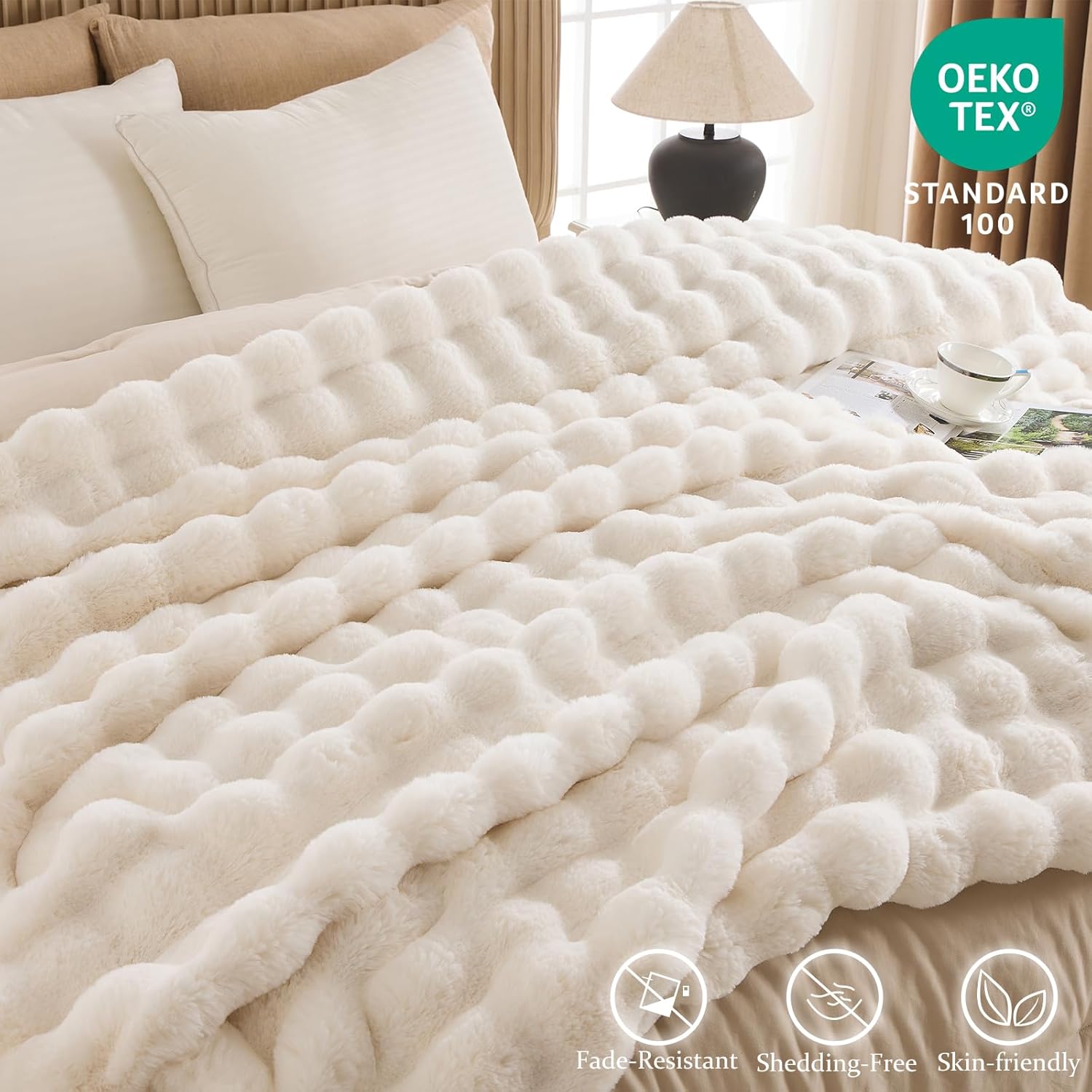 - Ultra-Soft Dual-Layer Comfort: Experience cloud-like softness with our bubble faux fur throw blanket, Combining a fluffy faux fur exterior with an ultra-soft microfleece interior, this blanket delivers a truly luxurious tactile experience. Designed for year-round comfort offers breathable warmth and sumptuous coziness in every season