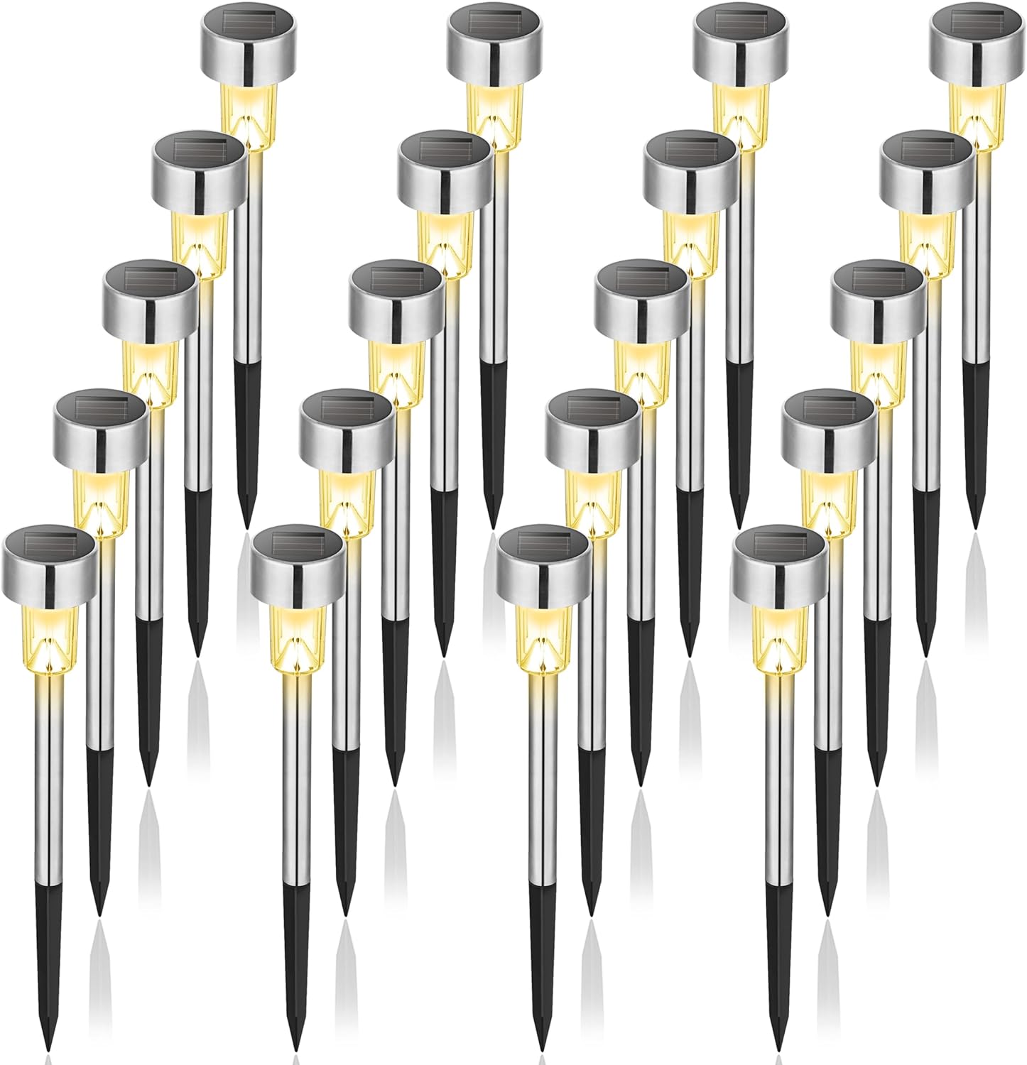 GIGALUMI Solar Lights Outdoor Waterproof, 20 Pack, Stainless Steel LED Solar Garden Lights for Patio, Lawn, Yard and Landscape, Garden Decor Patio Decor,Warm White