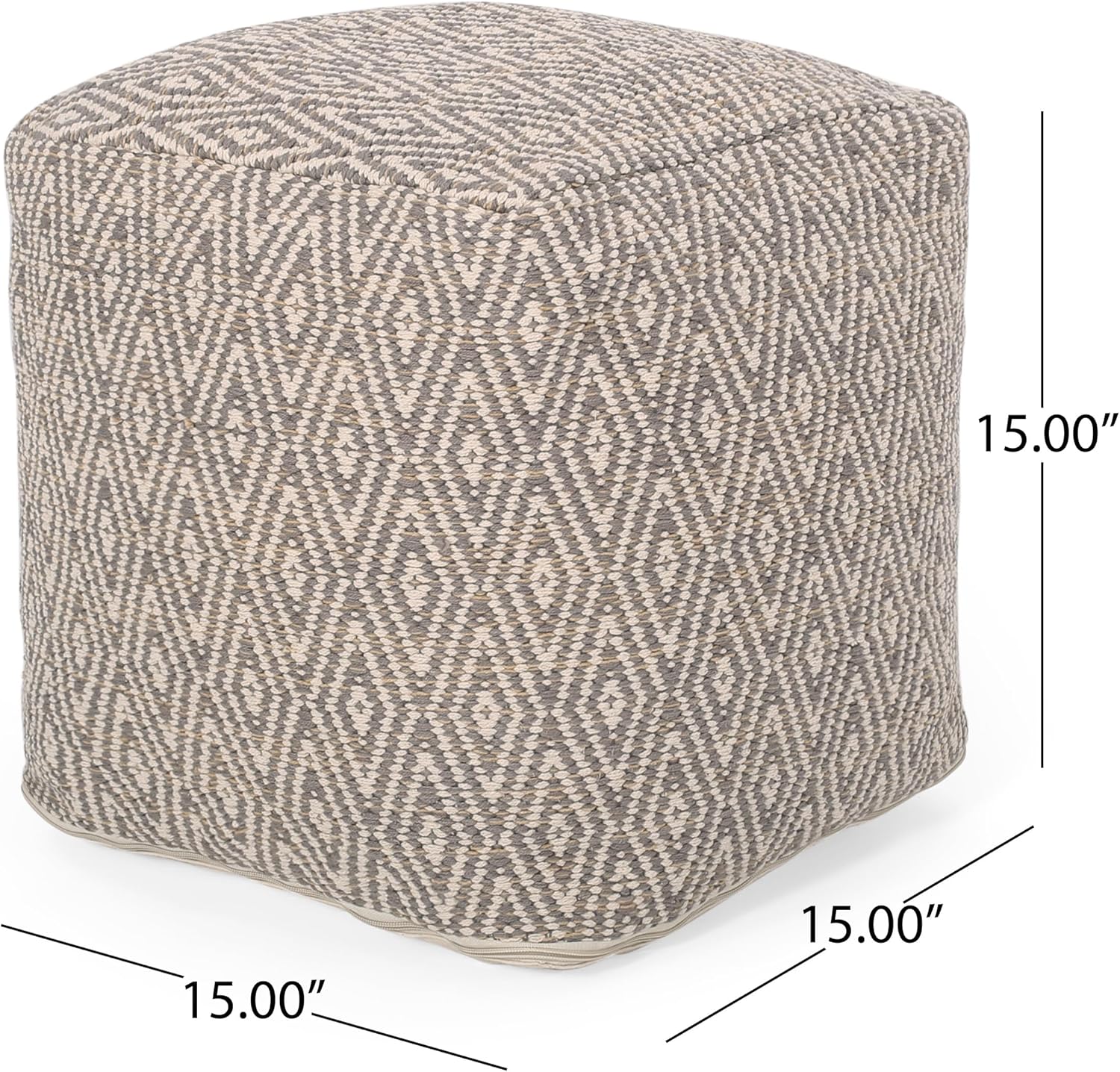 GDFStudio Boho Handmade Fabric Cube Pouf Ottoman Foot Stool - Bean Bag Floor Chair - Foot Rest Couch for Living Room Bedroom, Beige and Yellow,15"" x 15"" x 15"", 312183N