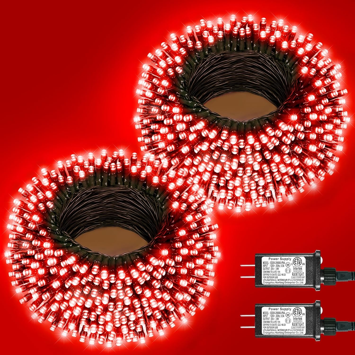 2 Pack Christmas Lights Outdoor, Total 200FT 600LED Christmas String Lights with 8 Modes Waterproof, Green Wire Twinkle Tree Lights for Indoor Room Patio Yard Xmas Party Decorations, Red