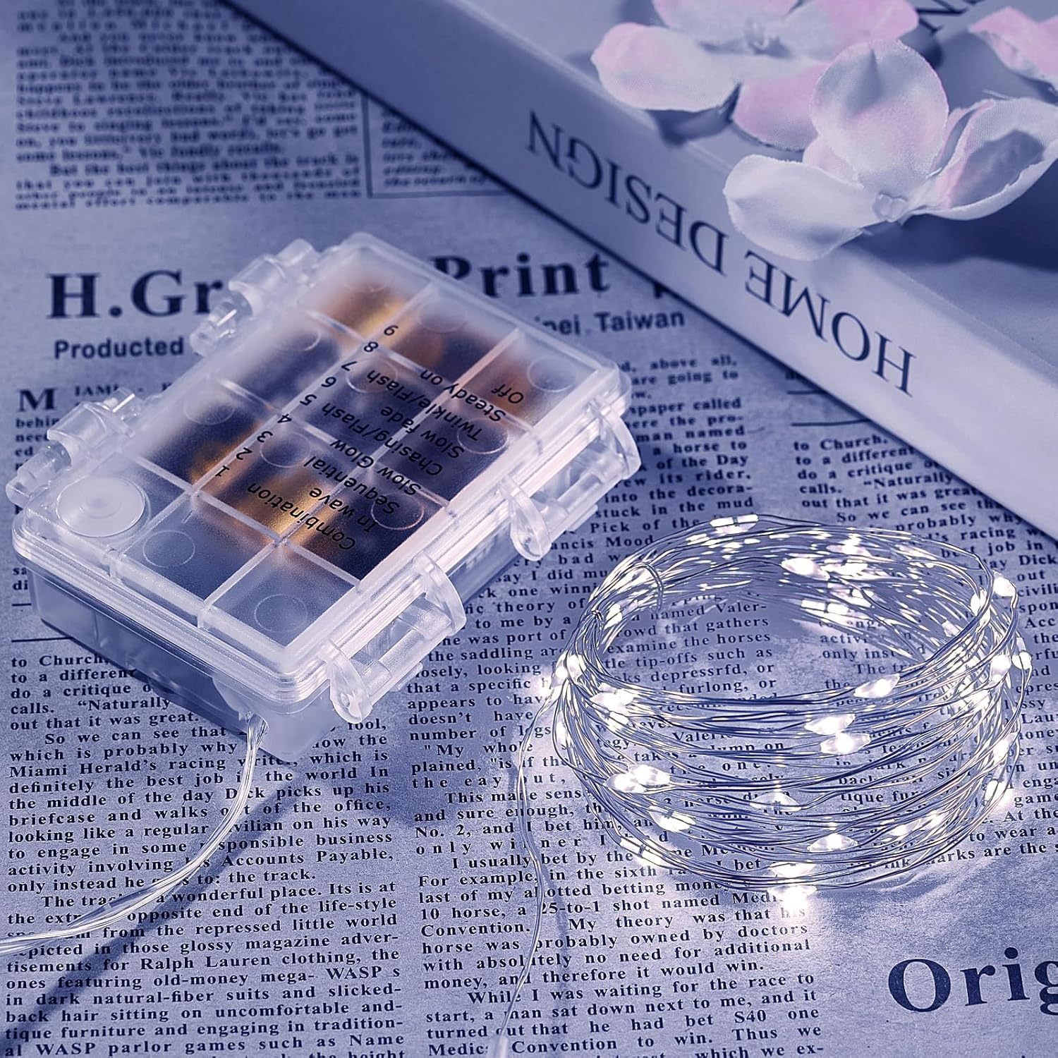 4 Pack 65.6 Ft. Battery Operated Outdoor String Lights with Remote & Timer, LED Cool Whit Fairy Lights, Waterproof Twinkle Lights for Bedroom, Dorm, Mason Jar, Wedding, Party, Christmas