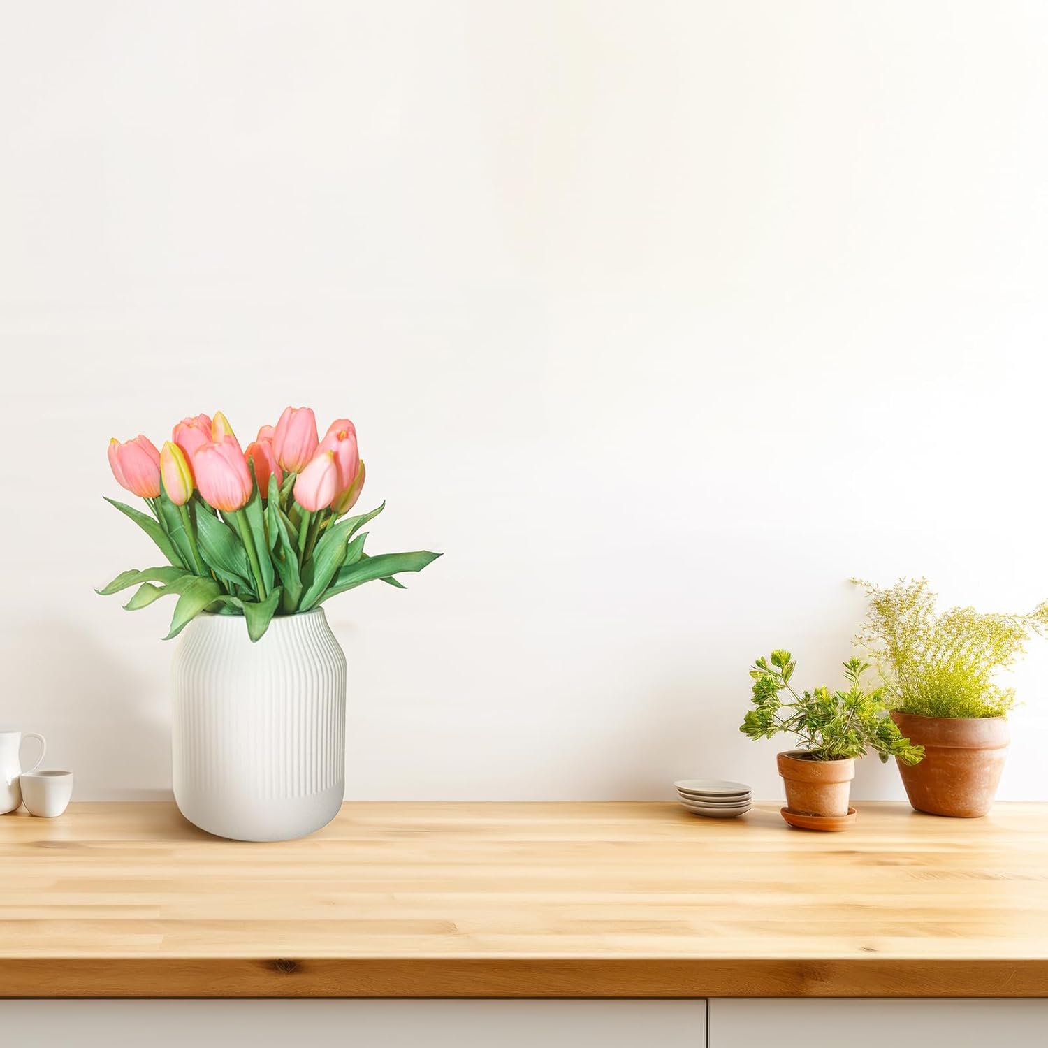 - [Low Maintenance]: Compared to real flowers,fake tulips require minimal upkeep. faux tulips won't wilt, offering a long-lasting decorative option. There's no need for watering, pruning, or sunlight, making them perfect for busy individuals or environments where real plants struggle to thrive.