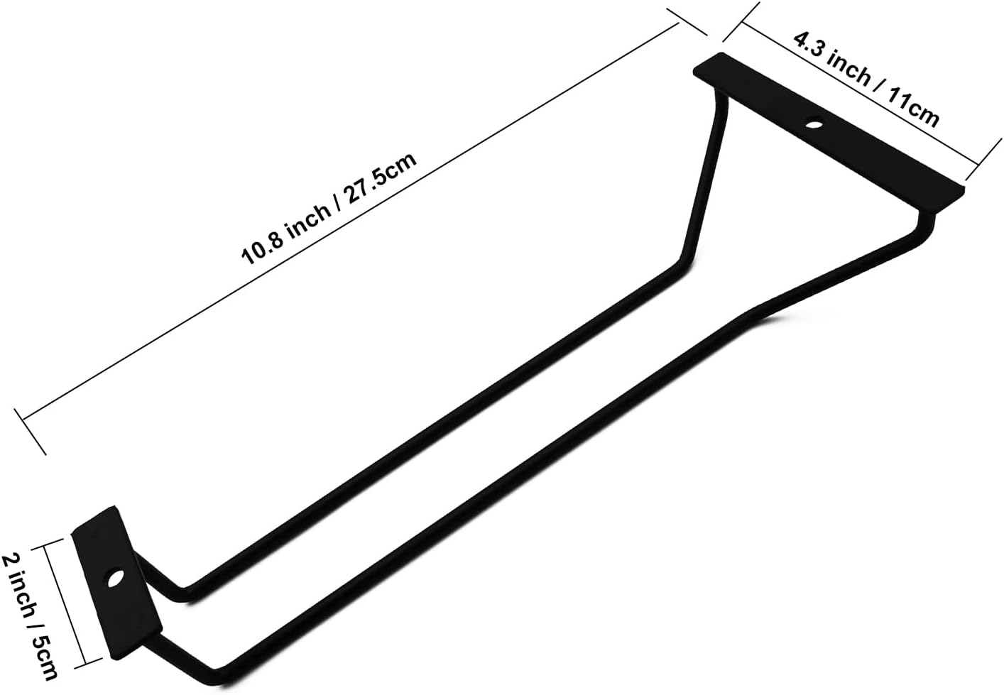 10.8 Inch Black Wine Glass Rack, Under Cabinet Wine Glass Holder Stainless Steel Stemware Rack - Hanging Stemware Holder for Cabinet Kitchen Bar, Set of 4