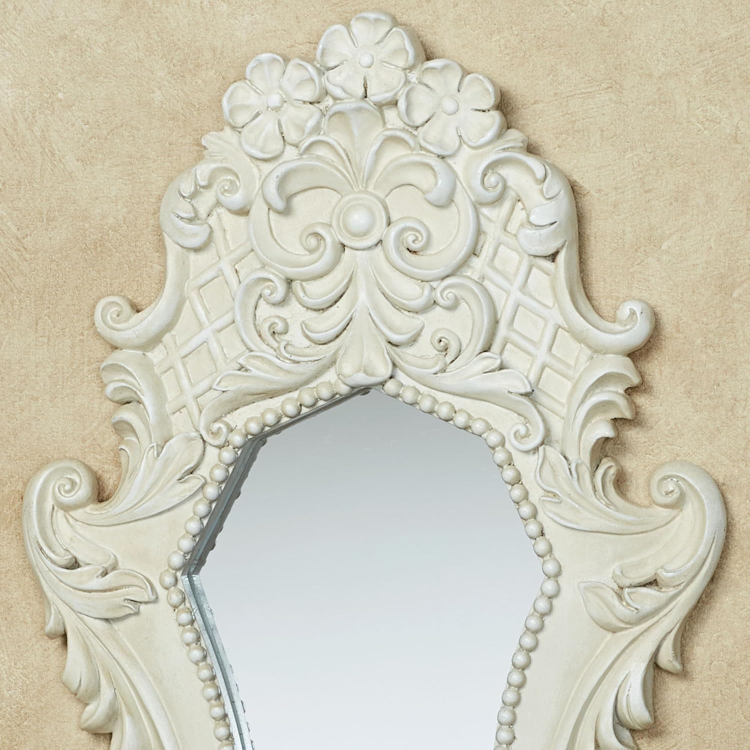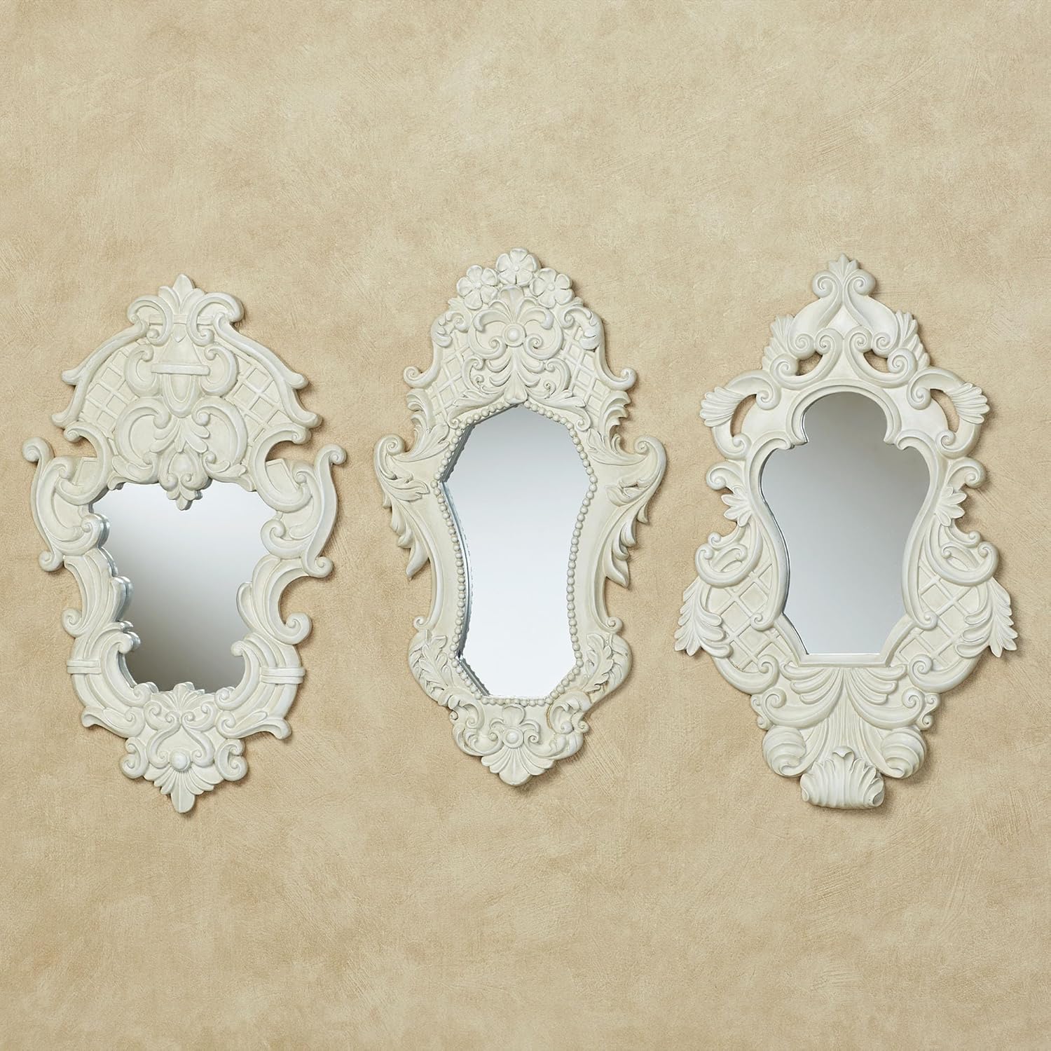 Lattice Scroll Antique White Traditional Classic Wall Mirrors | Set of Three | Vintage Accent Hanging Mirror for Bedroom, Living Room, Office, Hallway | Victorian Style Decor