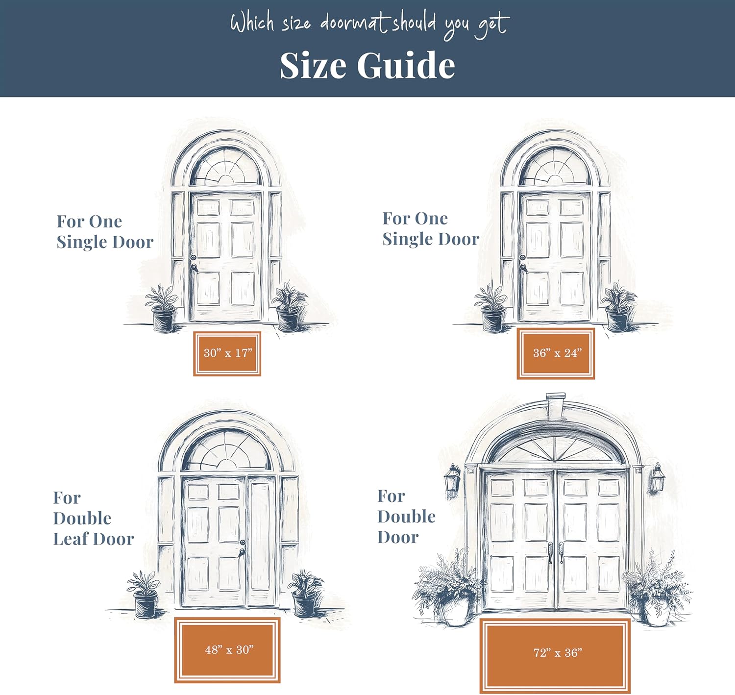 - The Perfect Size - Measuring 72 x 36 inches, our welcome mat outdoor entrance rug is just the right size for a double door entryway. It’s big enough to accommodate four people standing side by side, perfect for a grand french door entrance. It’s the ideal front door mat outside entrance rug for any home or office.