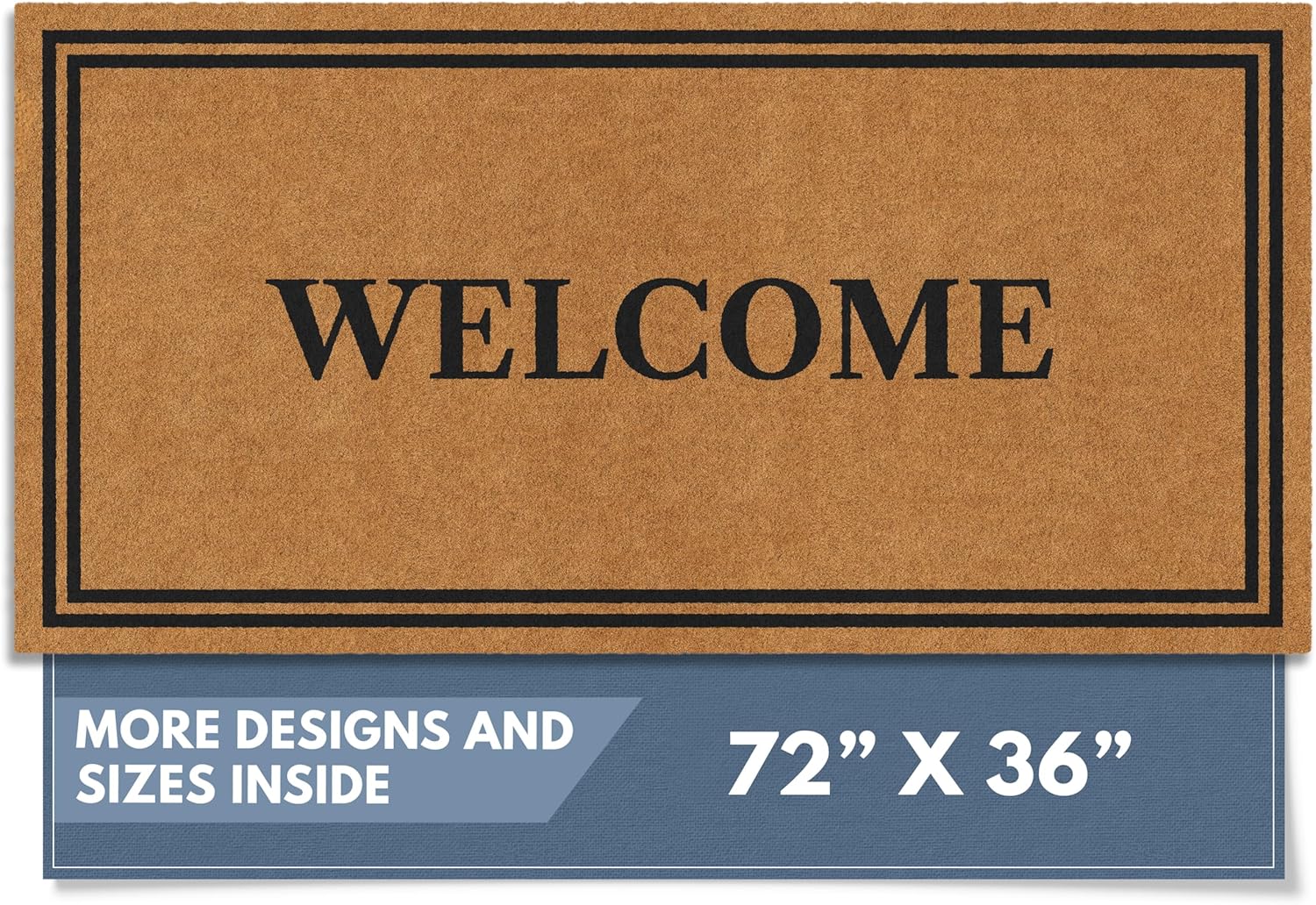Barnyard Designs Natural Coco Coir Heavy Duty Backing Doormat - Large Cute Non-Slip Front Door Welcome Mat for Outside Entrance or Porch Entry, Brown (36x72, Welcome)