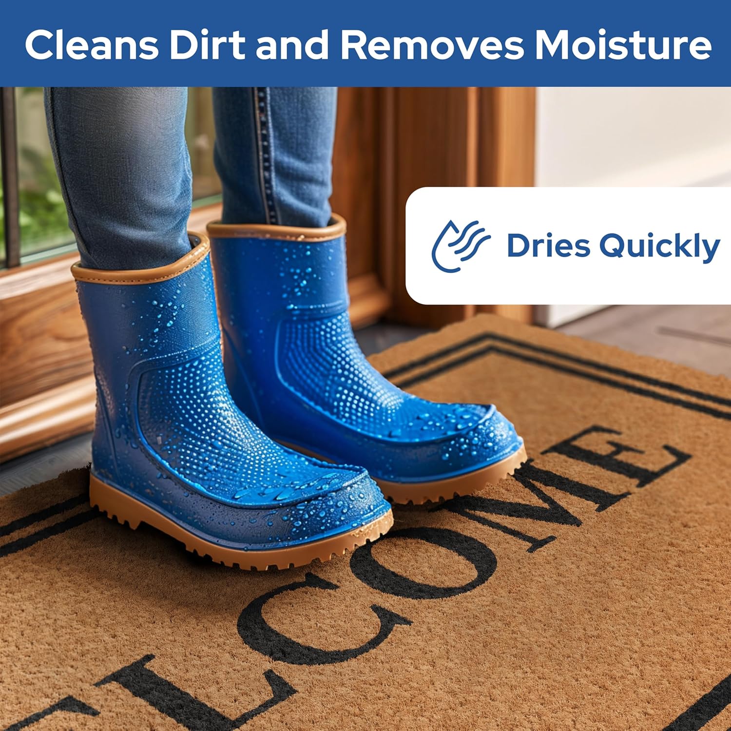 - Versatile - Our Welcome doormat outdoor entrances is not only perfect for patios, but also makes a great welcome mat for outdoor events or camping trips. Its durable construction is perfect for cleaning dirt and debris from shoes, and the all-weather coir fibers dry quickly. Use it to welcome guests to your home, cabin, or RV.