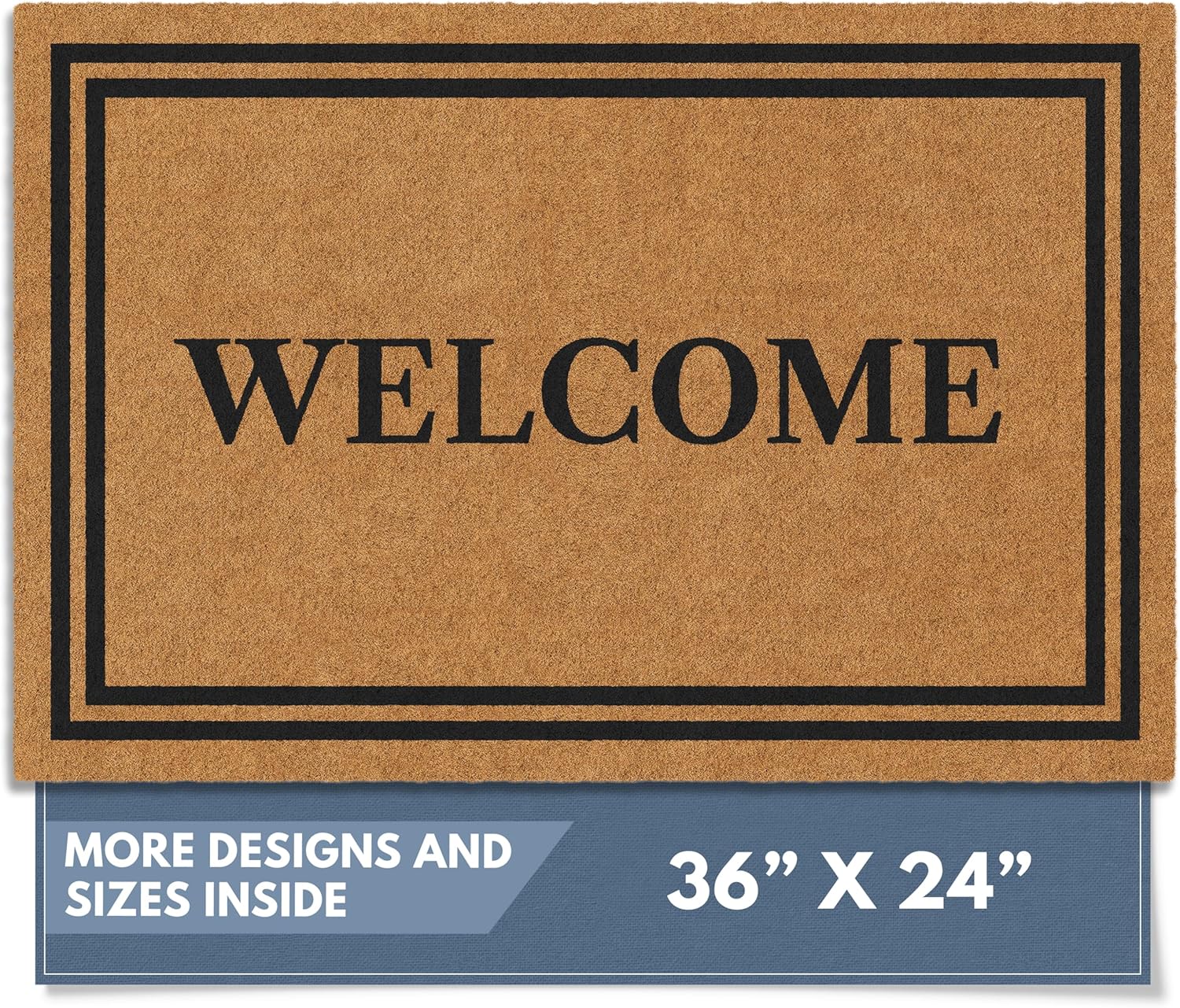 Barnyard Designs Natural Coco Coir Heavy Duty Backing Doormat - Large Cute Non-Slip Front Door Welcome Mat for Outside Entrance or Porch Entry, Brown (24x36, Welcome)