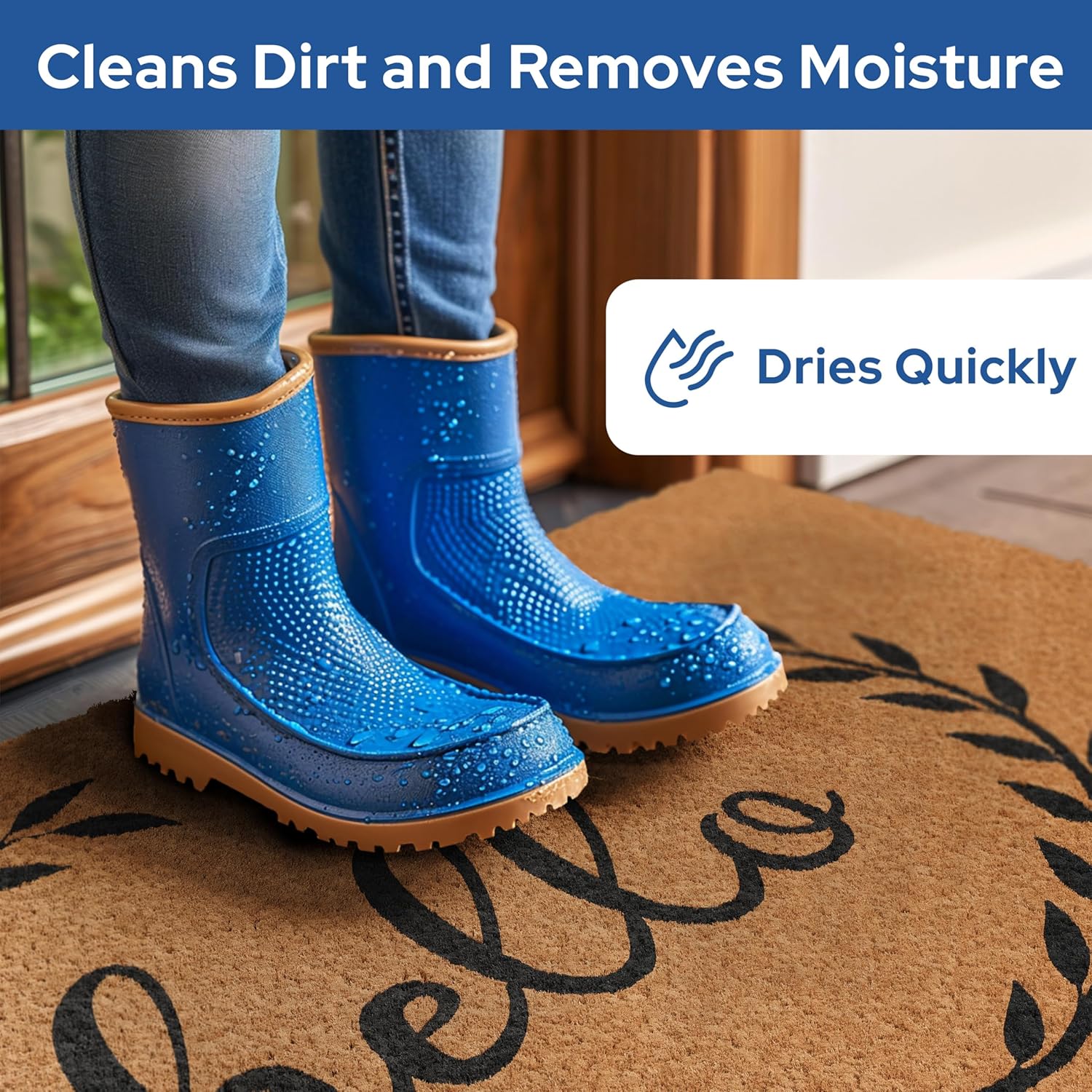 - Slip-Proof - Our non-slip rubber backing keeps the welcome door mat securely in place, preventing slips and falls. Whether you have a concrete, stone, or wooden porch, our exterior door mat outside entrance rug will stay put and keep your visitors safe.