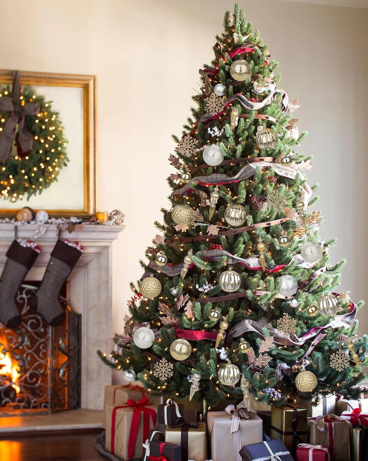 - COMPLETE 92-PIECE SET β Each Christmas ornament set includes 92 carefully selected pieces in various sizes and designs, including classic round balls, intricate finials, glittery snowflakes, and mini baubles. This complete collection allows you to decorate your entire Christmas tree with a perfectly coordinated look