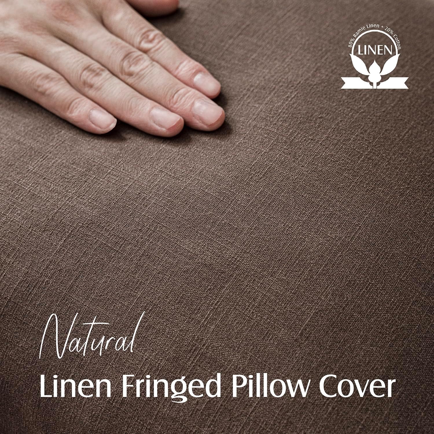 Foindtower Set of 2 Decorative Linen Fringe Throw Pillow Covers Boho Farmhouse Cushion Cover with Tassels Soft Accent Pillowcase for Couch Sofa Bed Living Room Home Decor,20×20 Inch,Reddish Brown