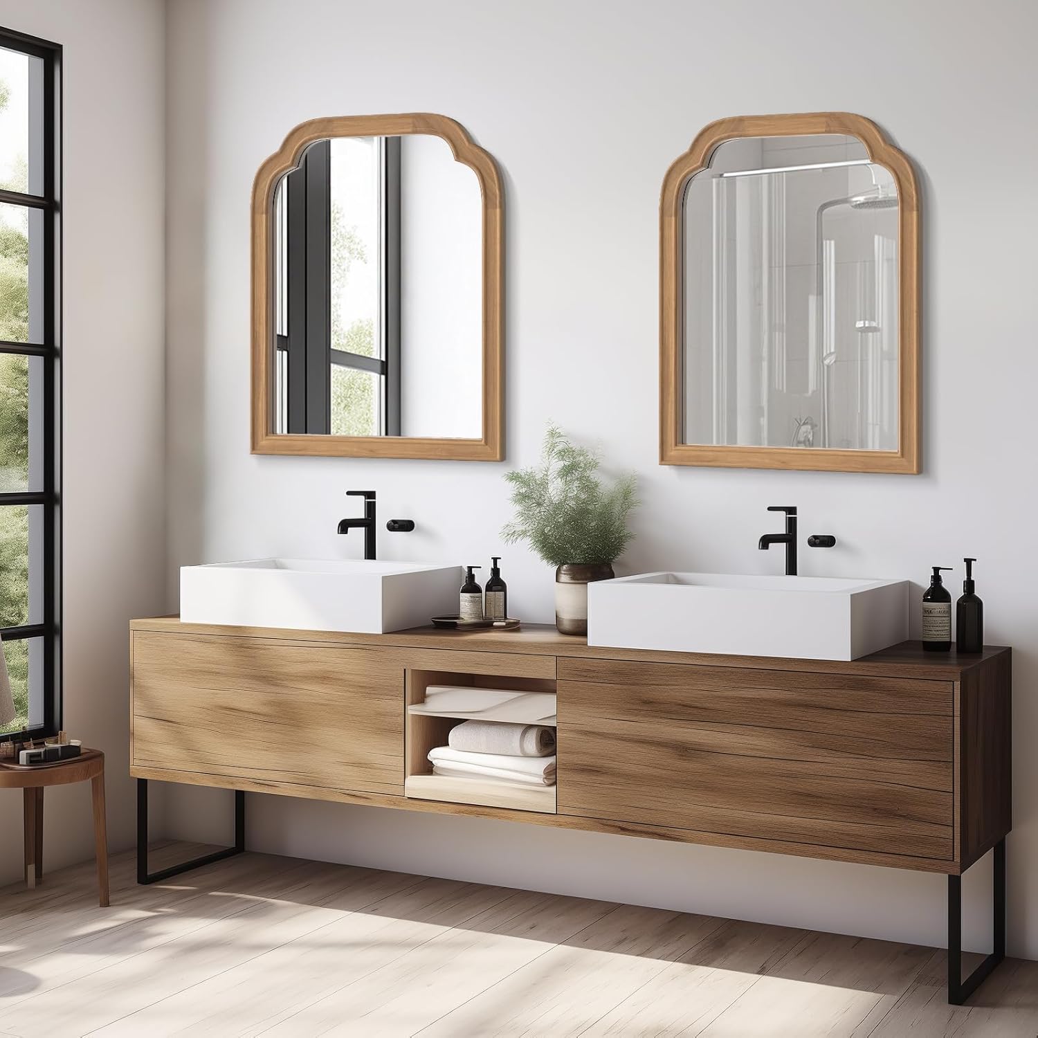 - Decorative Mirror: Modern minimalist style and consistent gorgeous aesthetic design are suitable to decorate any space, Fit farmhouse, bathroom, bedroom, living room, entryway, etc. Visually expand the space, increase the light, enhance the beauty of any room in the home.