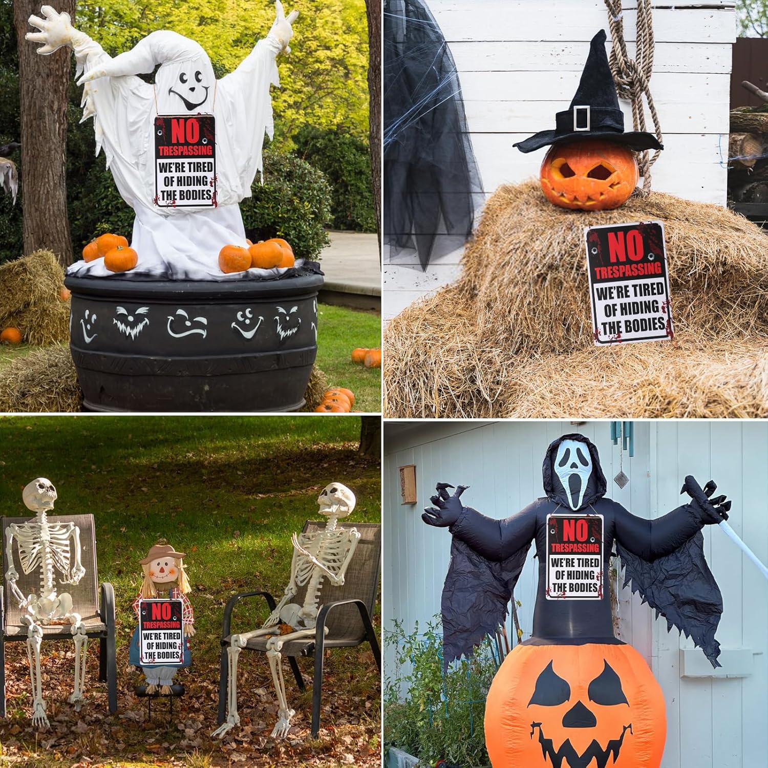 - Clear To Read: High contrast printing ensures visibility in low light; enhances scary Halloween decorations; durable no trespassing sign for lasting display