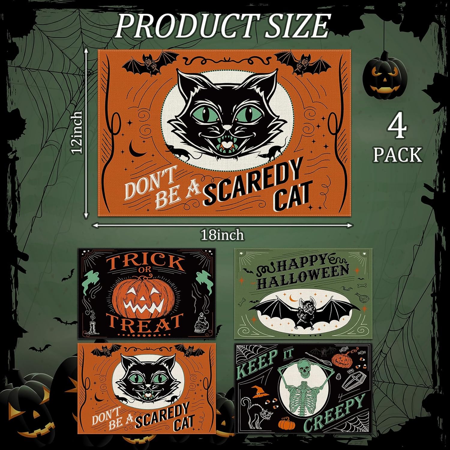 - SUITABLE SIZE: Each Halloween placemat measures about 12 x 18inch, a proper size for your tableware, perfect decoration for your dining table.
