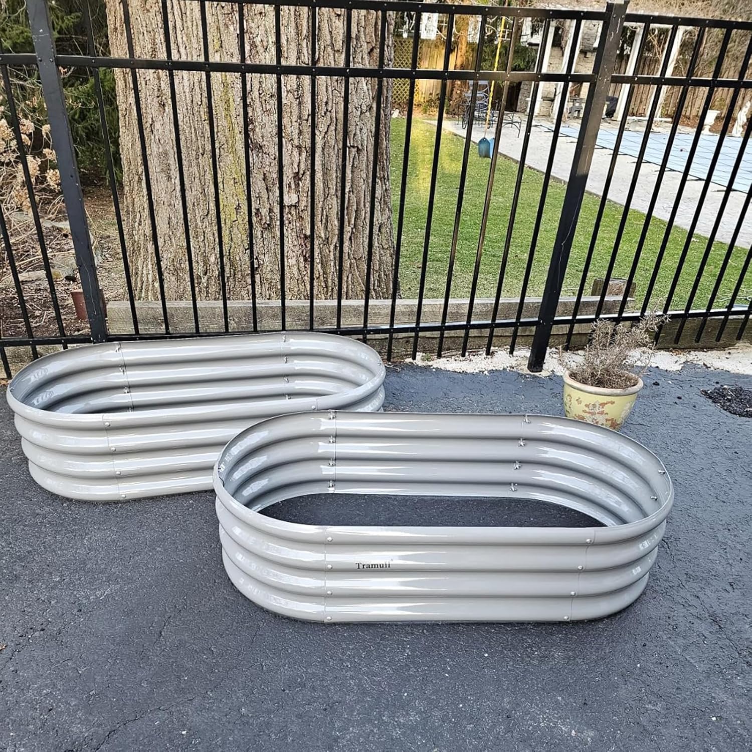 - 【Safety Features】①Anti-rust Coating, do not contaminate soil, safe for plants and humans; ②Oval shape, the raised planter box has rounded corner; ③Thickened crimped edge design, no sharp edges, smooth to the touch; ④ Gloves included; will not hurt your hand when installing or planting