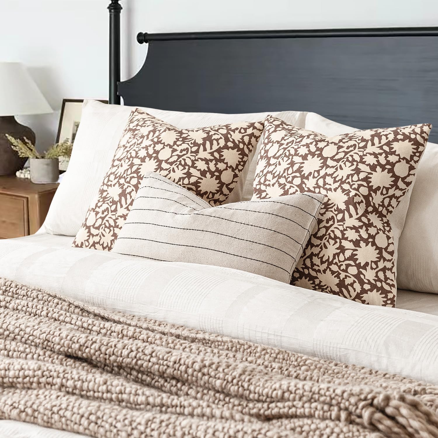 Foindtower Set of 2 Decorative Neutral Floral Throw Pillow Covers Accent Farmhouse Cushion Covers Boho Vintage Pillowcase for Couch Sofa Bedroom Living Room Home Decor Outdoor,20×20 Inch,Brown