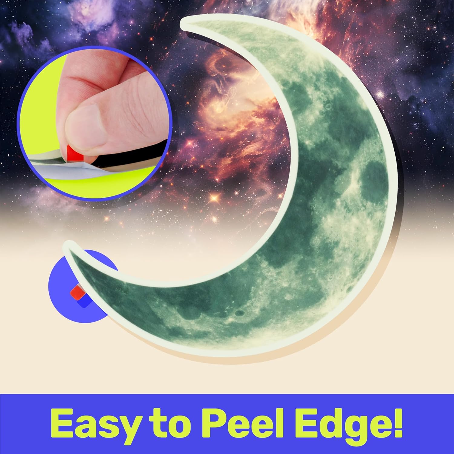 - BRING THE NIGHT SKY HOME - this set featuring fluorescent stars and a half-moon. Transform any room into a starry space by day or a glowing night sky by night. Ideal for any bedroom decor.