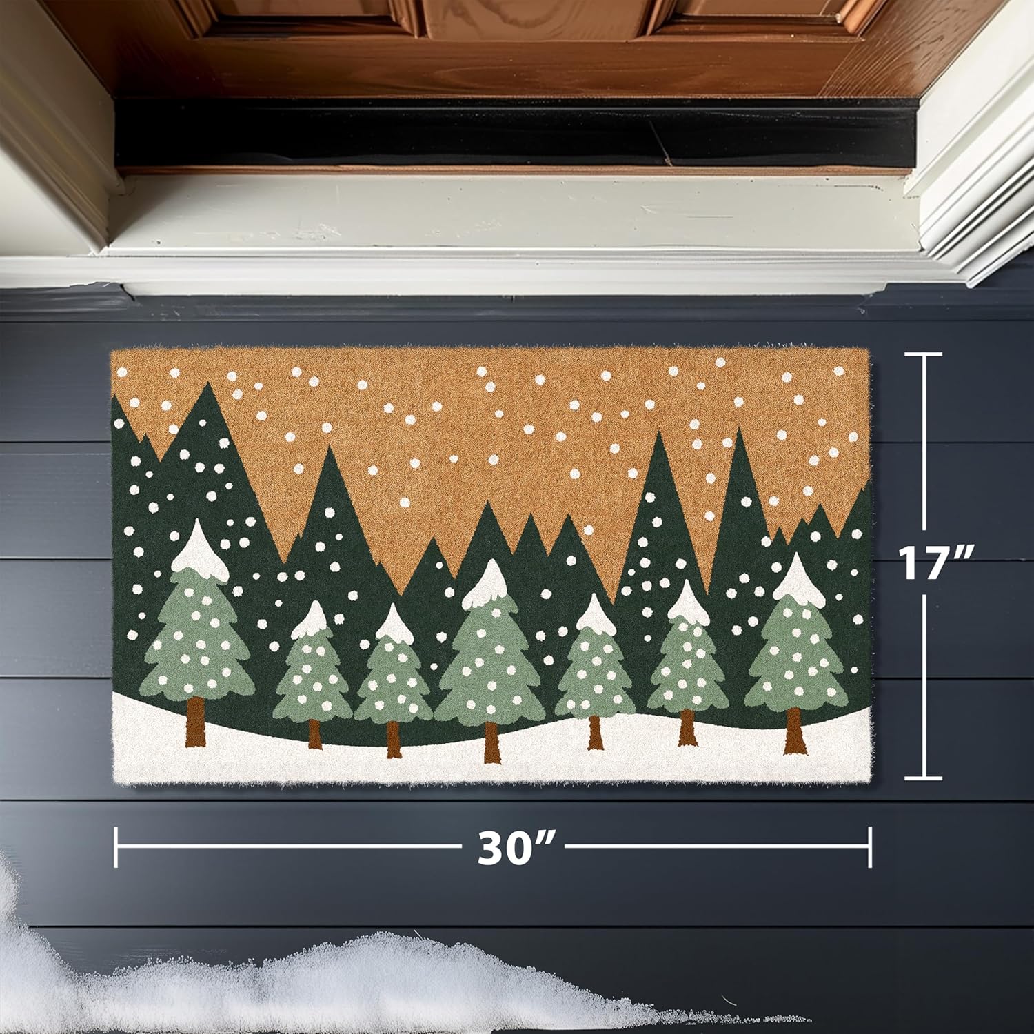 Barnyard Designs Natural Coco Coir Christmas Doormat - Large Cute Non-Slip Heavy Duty Backing Door Mat for Outside Entrance or Porch Entry, Brown (17x30, Winter Snow Forest)