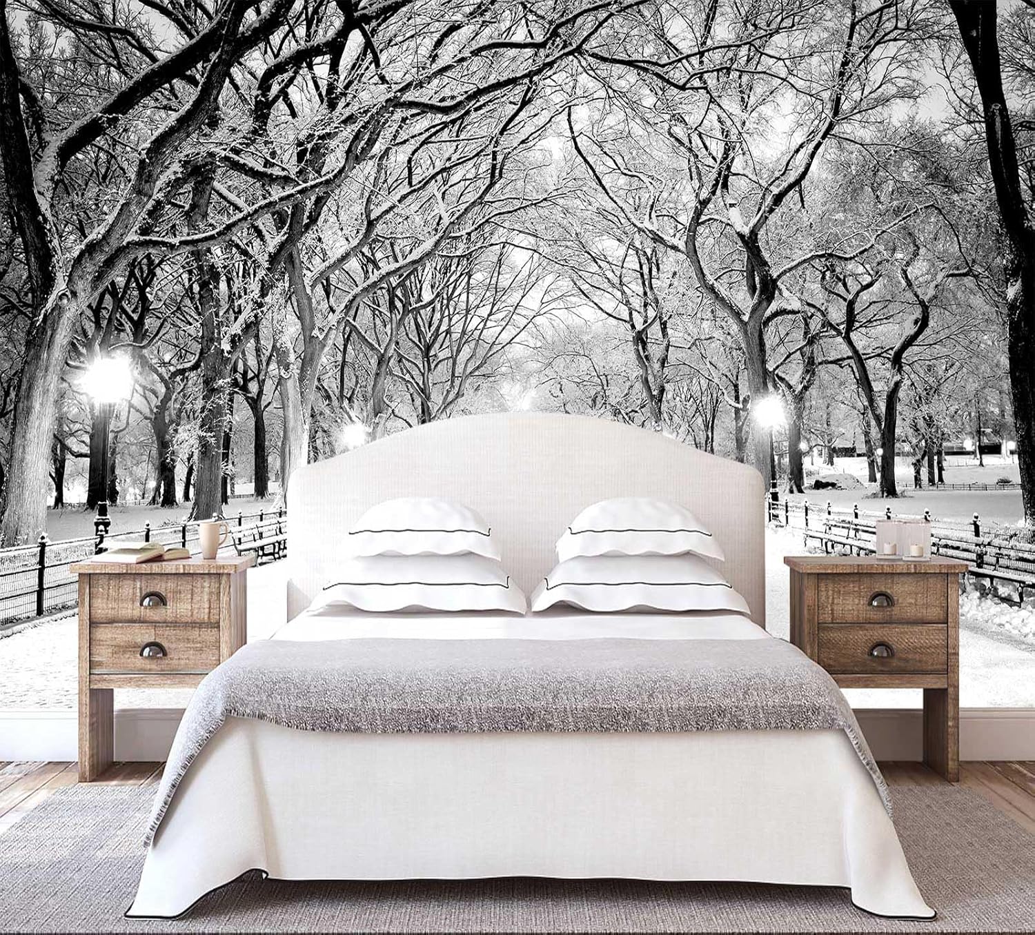 Beautiful 3D Snowy Forest Wallpaper Gray New York Park Landscape Wall Mural Living Room Bedroom (Not Peel and Stick)