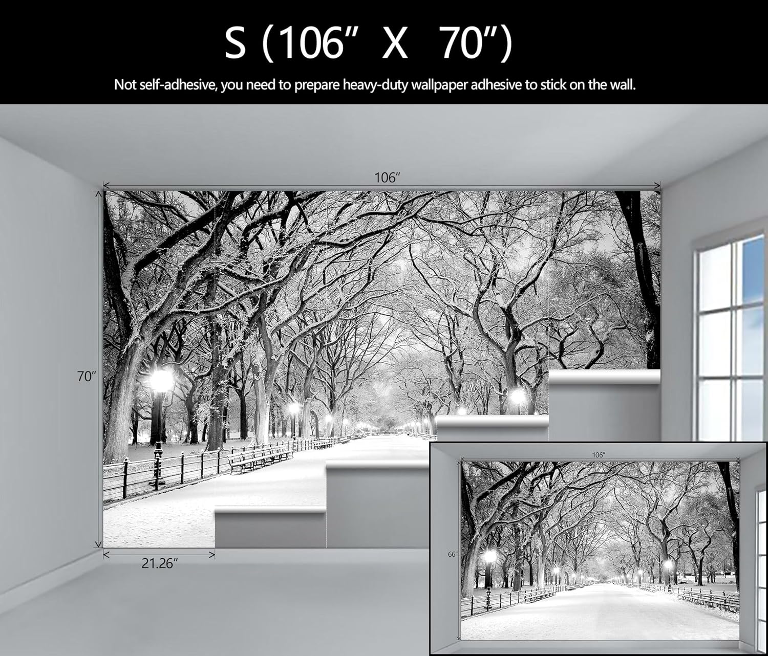 Beautiful 3D Snowy Forest Wallpaper Gray New York Park Landscape Wall Mural Living Room Bedroom (Not Peel and Stick)