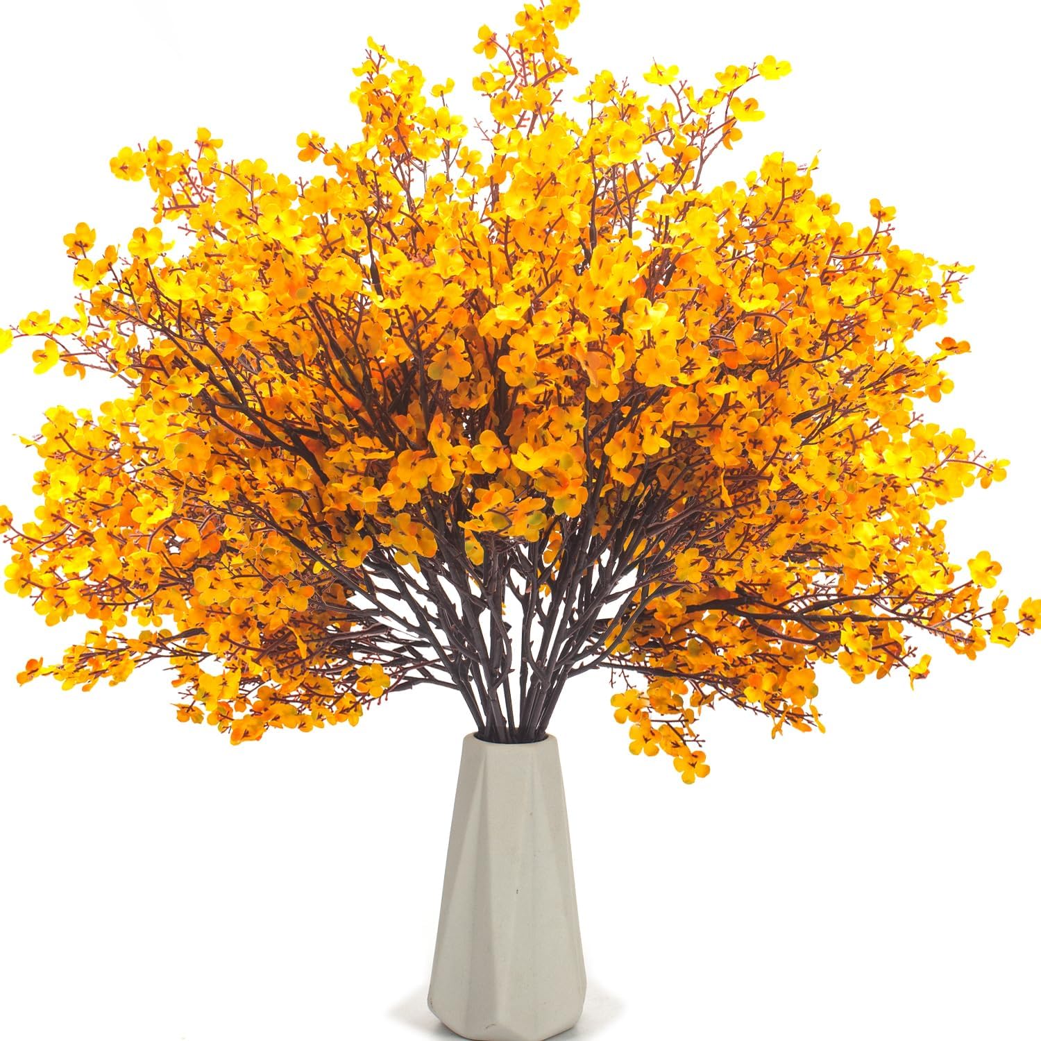 - Vibrant Color and Fall Aesthetic: These Babys Breath Artificial Flowers come in a vibrant orange color that perfectly complements the autumn season. Whether used as table centerpieces for fall-themed events or as decorative accents around the house, these flowers will bring warmth and charm to any space.