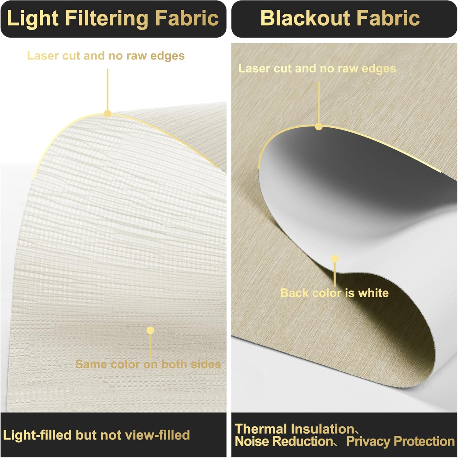 - CUSTOMIZED FABRICSļ¼You can choose the front and back order of blackout fabrics and light filtering fabrics. There are 20 types of blackout fabrics and 7 types of light filtering fabrics, including jacquard fabrics and linen fabrics. You can mix and match according to your personal preference. CUSTOMIZED SIZEļ¼Custom width range 23"-86".Maximum height is 98" (fractional accuracy of 1/8). Customized Size please click the"Customize Size" button in the list to purchase
