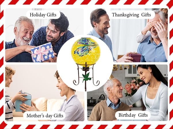 - Attractive pattern design: Enjoy the soothing yellow hues of this glass garden sphere.The colorful and mysterious pattern is like a peacock tail about to bloom,elegant and beautiful,suitable for garden decor,porch decor,yard decor,pathway decor,outdoor decor,and indoor decor placed on the ground