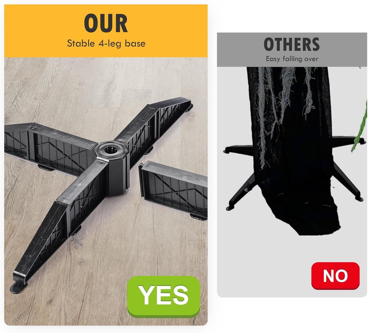 - Easy & Quick Setup - No tool is required for easy installation in minutes, just assemble the base, connect the poles, put the battery compartment through the pole, and extend the ghost decoration; Features adjustable pole height by fitting together different numbers of poles to suit your needs, and 4-leg base for better stability