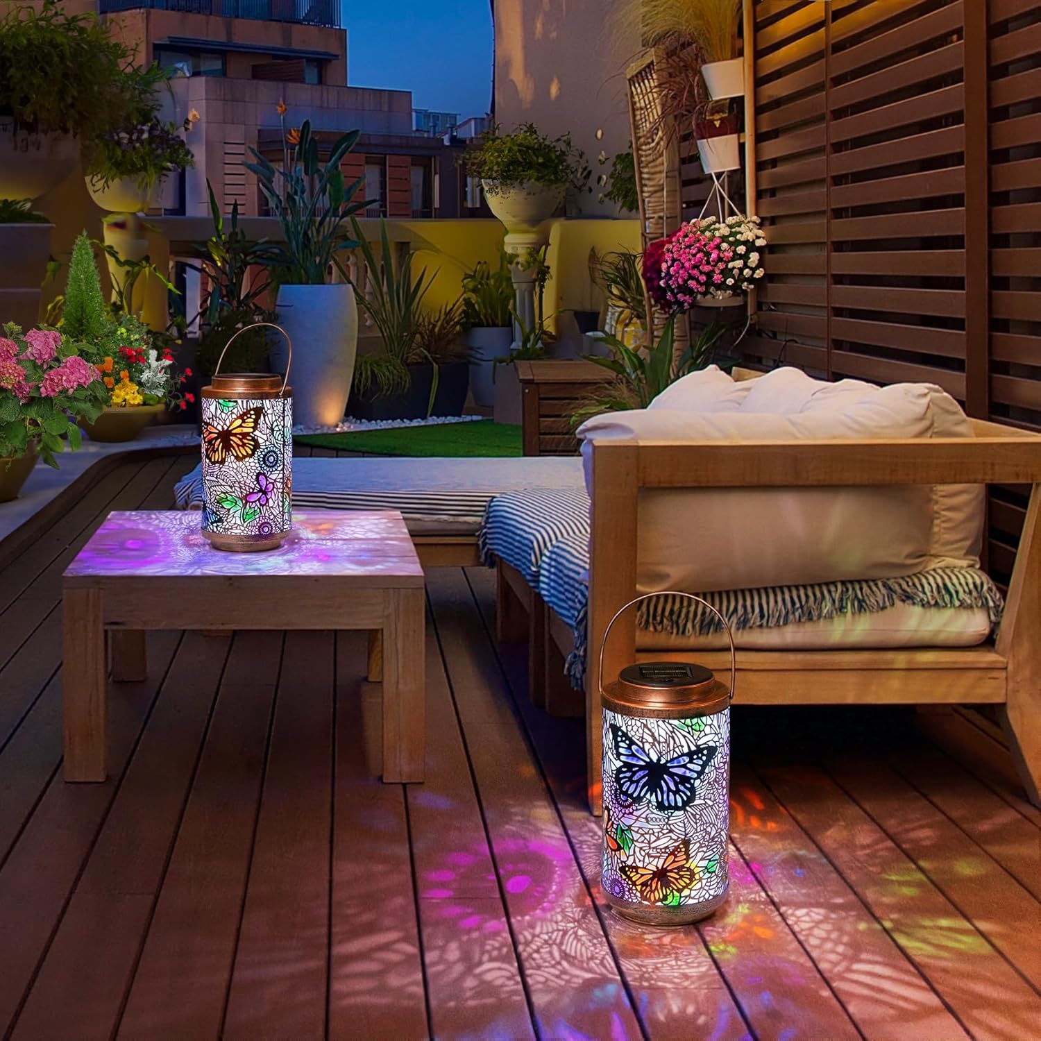 - âď¸Solar Powered, Energy Saving: No need for batteries or electricity. The outdoor solar lanterns charged in direct sunlight by day, and automatically light up at night. The beautiful shadows are playful and artistic which help creating a beautiful ambiance in your balcony, yard, garden, patio, terrace, pavilion, Roof, window or porch