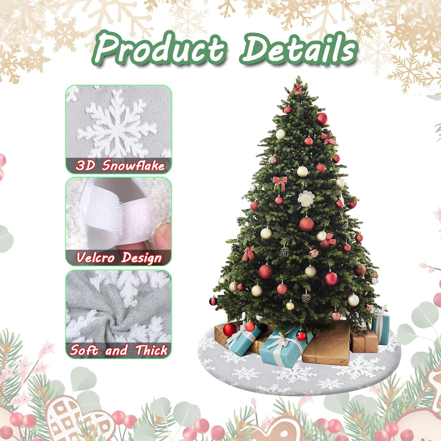 - đ đ ăPerfect Christmas Giftă The snowflake tree skirt fits perfectly with white Christmas tree ornament motifs on which your pets and children can lie down to have fun. It is also suitable for decorating Christmas trees at home, office, school or hotel.