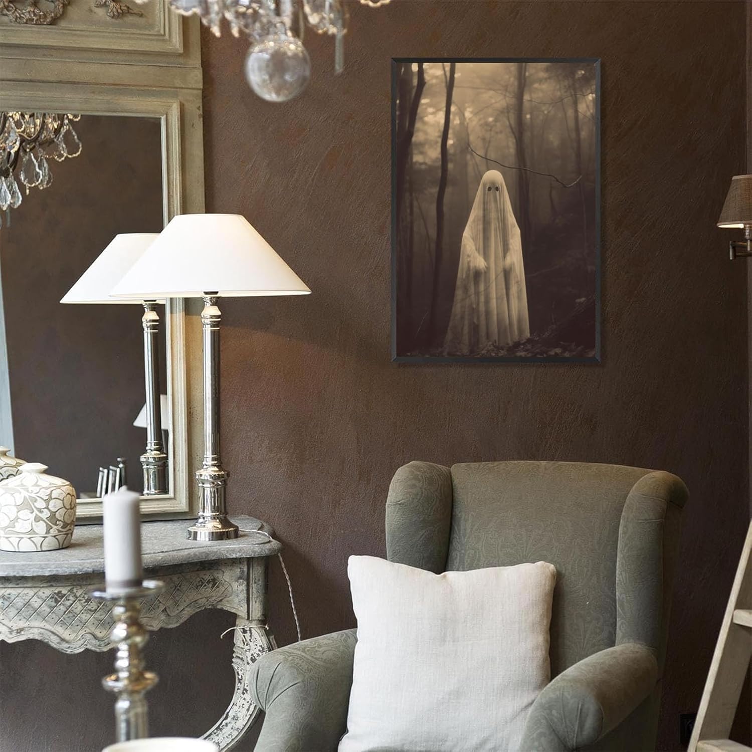 Ghost Forest Spooky Print Poster The Gothic Room Decor Creepy Picture Posters Dark Academia Aesthetic Family Prints Canvas Wall Art Home Apartment Decorations 16X24inch Aluminum Framed