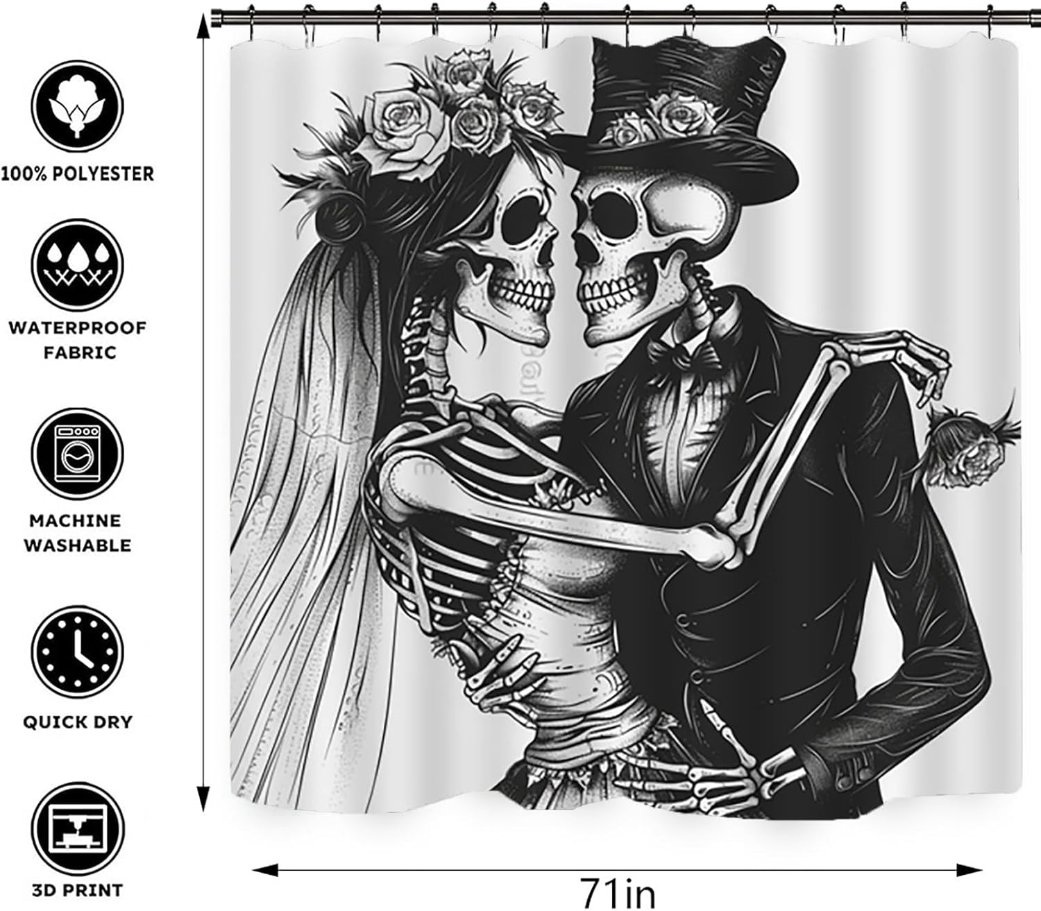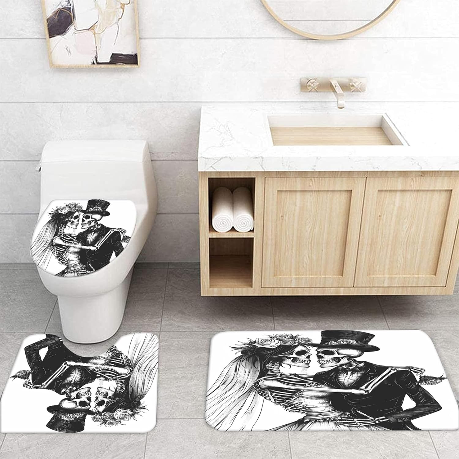 NEWSUYAA Halloween Decorations Shower Curtain Set with Non-Slip Rugs and Bath Mats,Black Skull Skeleton Bathtub Curtains with 12 Hooks,All Saints'Day (Nov 1st) Bathroom Decor