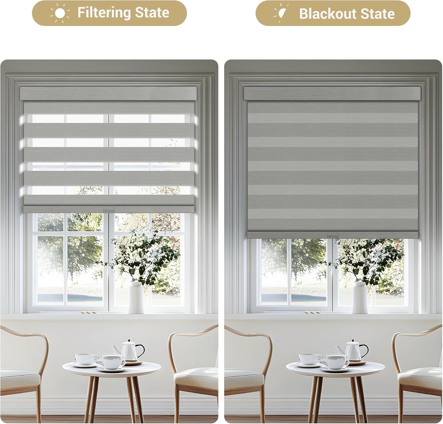 Cordless Zebra Blinds for Windows, Blackout Interior Blinds,Easy to Install,UV Protection,for Offices and Home,Custom Roller Shades, Mousse Light Grey,52" W x 88" H