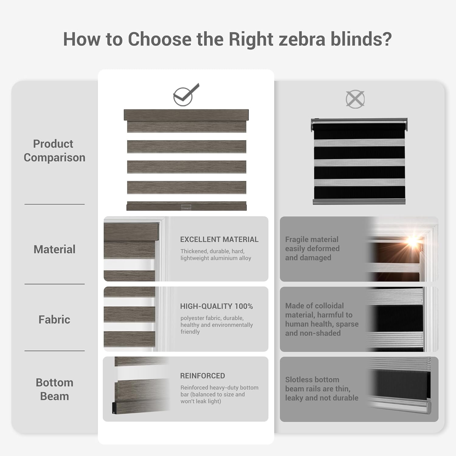 Cordless Zebra Blinds for Windows, Blackout Interior Blinds,Easy to Install,UV Protection,for Offices and Home,Custom Roller Shades, Mousse Dark Bown,41" W x 64" H