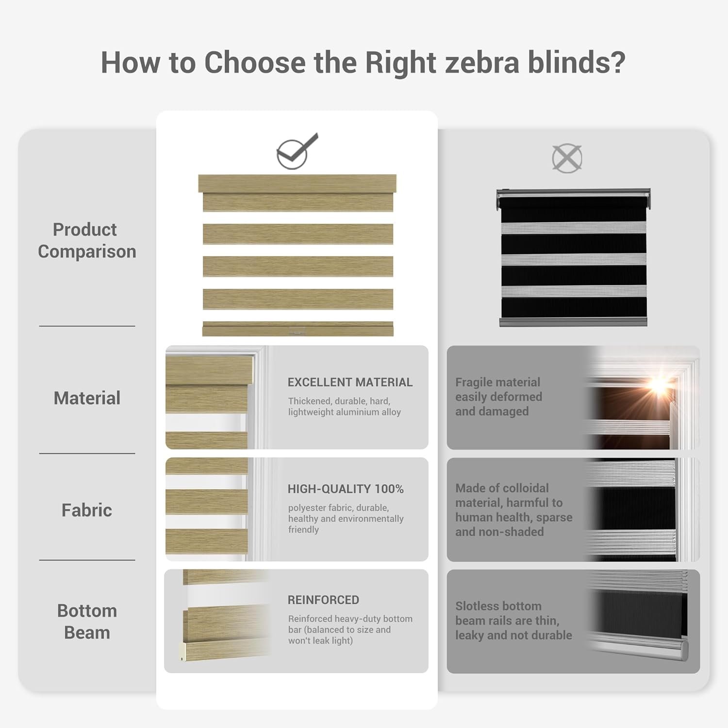 Cordless Zebra Blinds for Windows, Blackout Interior Blinds,Easy to Install,UV Protection,for Offices and Home,Custom Roller Shades, Mousse Light Bown,79" W x 80" H