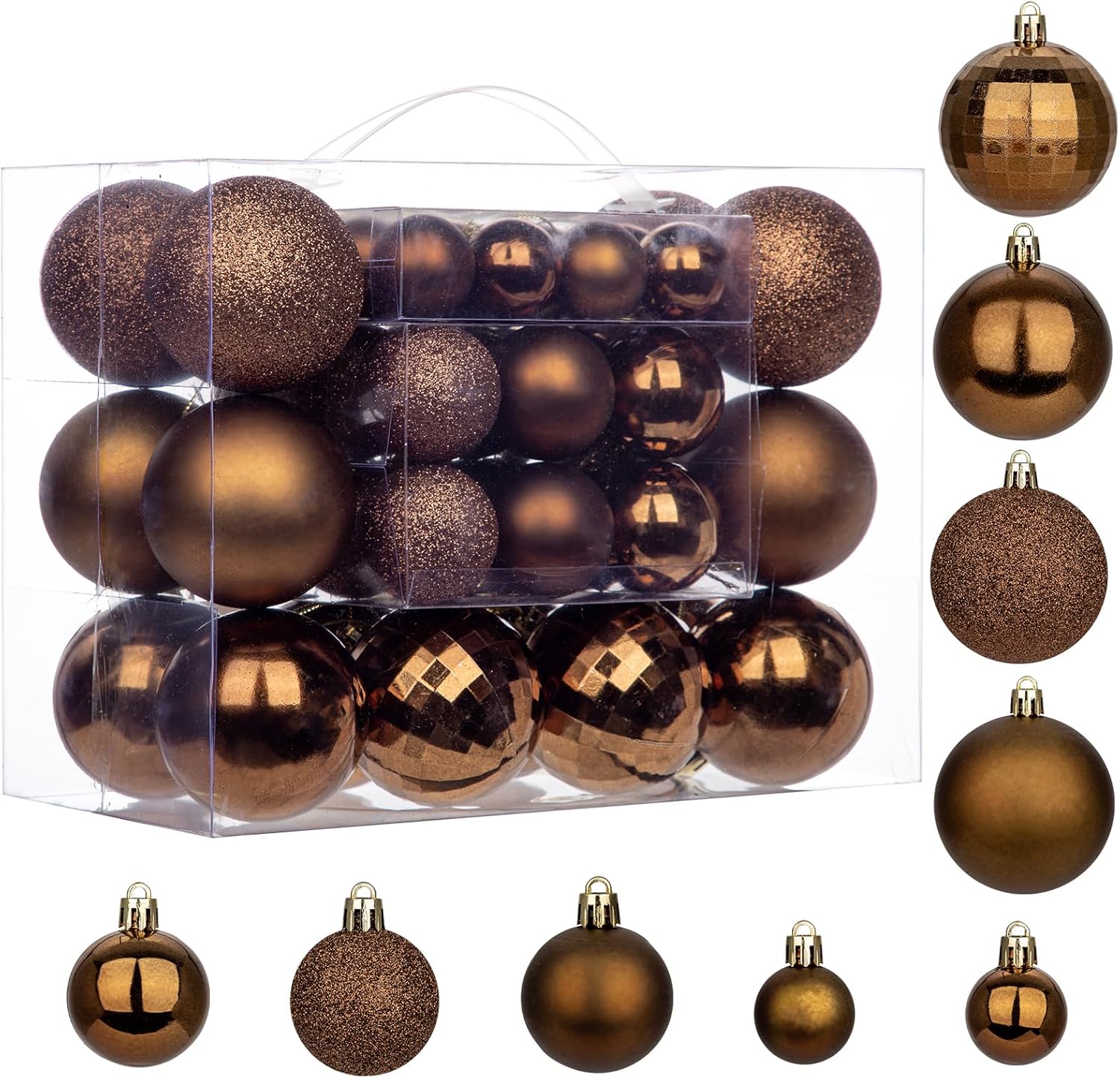 50pcs Christmas Ball Ornaments Brown Shatterproof Christmas Tree Ball Decorations Xmas Tree Large Xmas Ornaments Balls with Hanging Loop for Xmas Wedding Holiday Party Wreath Home Decor