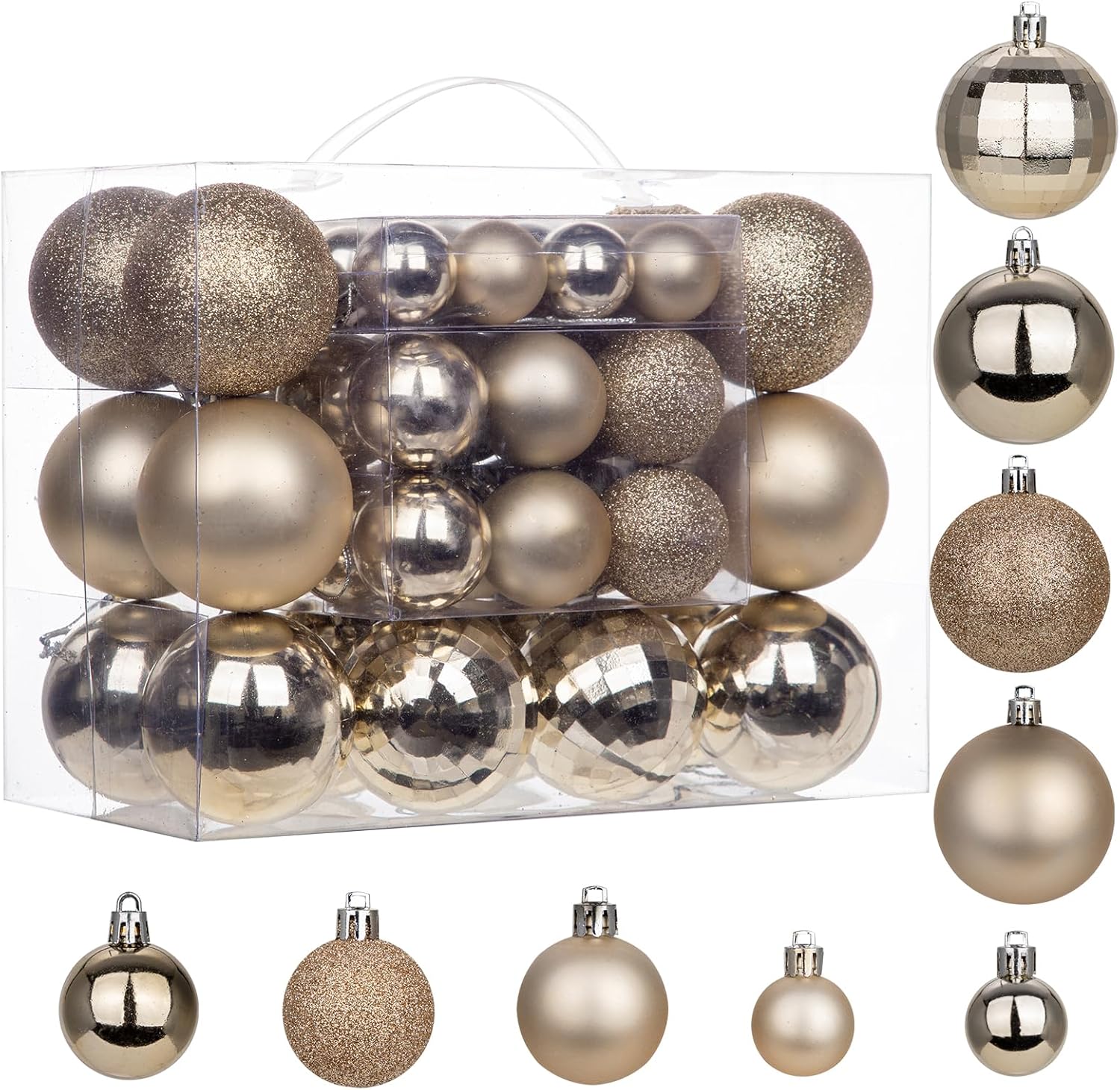 50pcs Champagne Christmas Ball Ornaments Set Shatterproof Christmas Ball for Xmas Tree Xmas Ornaments Balls with Hanging Loop for Xmas Wedding Holiday Party Wreath Home Decor