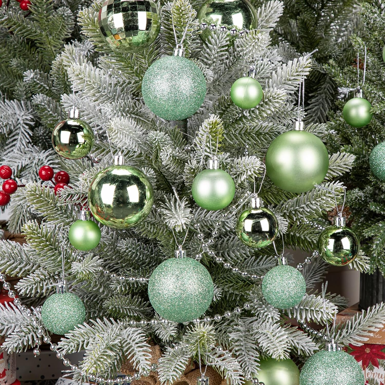 - Easy to Use: Each hanging lime green Christmas ball ornament equips a hook with string for you to hang it easily. Perfect fit for any normal size tree, give yourself a perfect space, hang anywhere you like. Such as tree branches, gate, fence, banister, etc. Create a warm and harmonious atmosphere