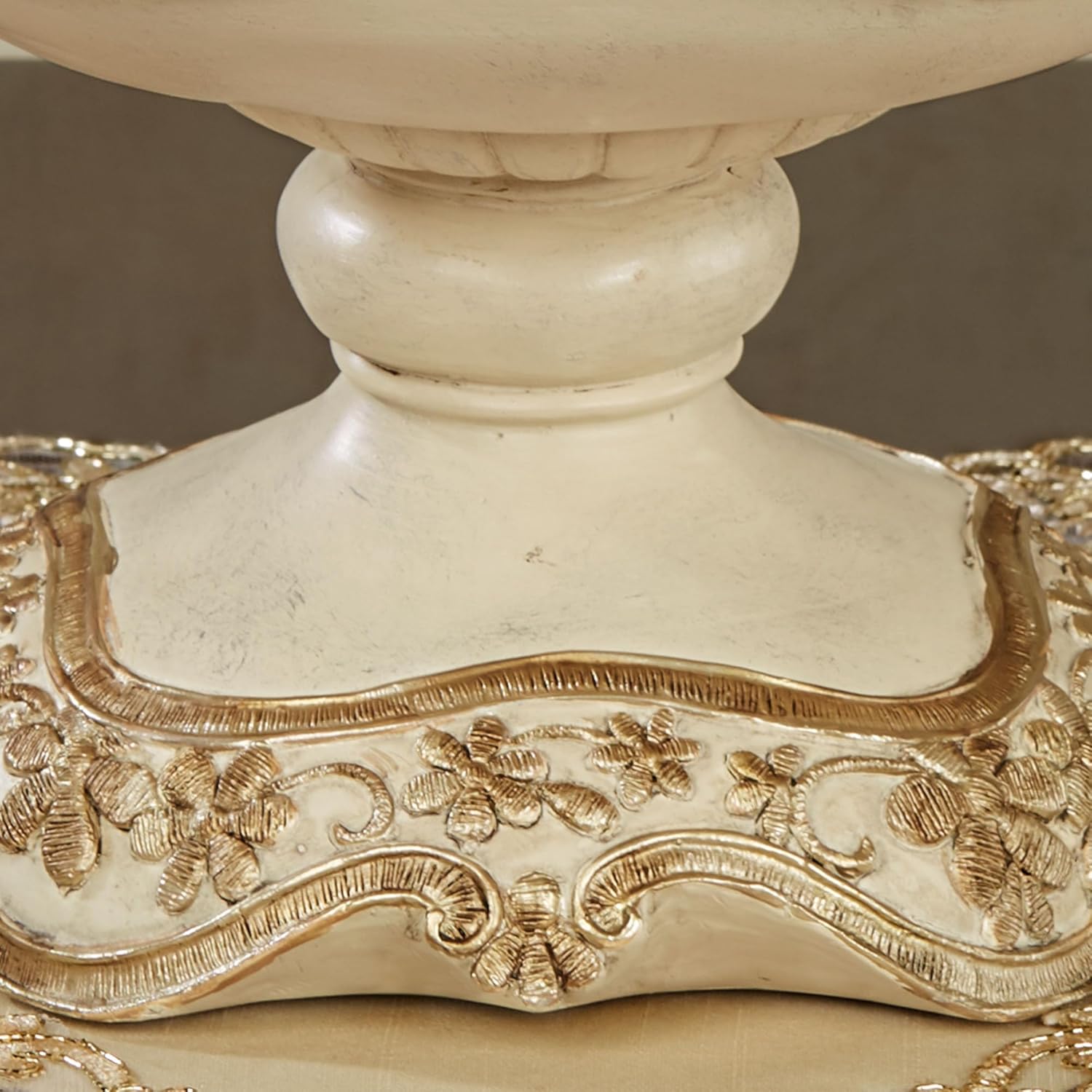 - DESIGN ELEMENTS: Centerpiece bowl with raised gold florals and scrolls. Handpainted accents have an ivory and silver background. Perfect as a centerpiece bowl orbs set for any elegant decor.