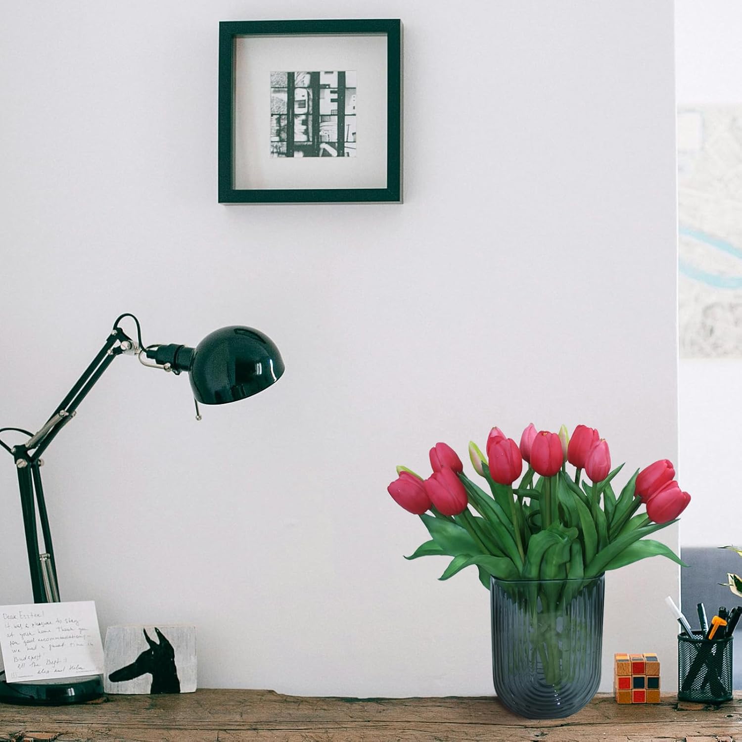 15pcs Artificial Tulips Flowers, Fake Tulips Real Touch, Faux Latex Bouquets, for Party Wedding Home Room Decoration (Rose Red)