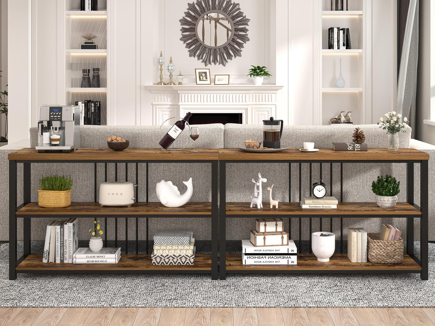 - Versatile: Console tables for entryway, doubling as display, entry way, TV console, behind couch table, foyer, window table, sofa bar table or open storage shelves for living room, office, dining room, bedroom, hallway. Marrying functionality with style