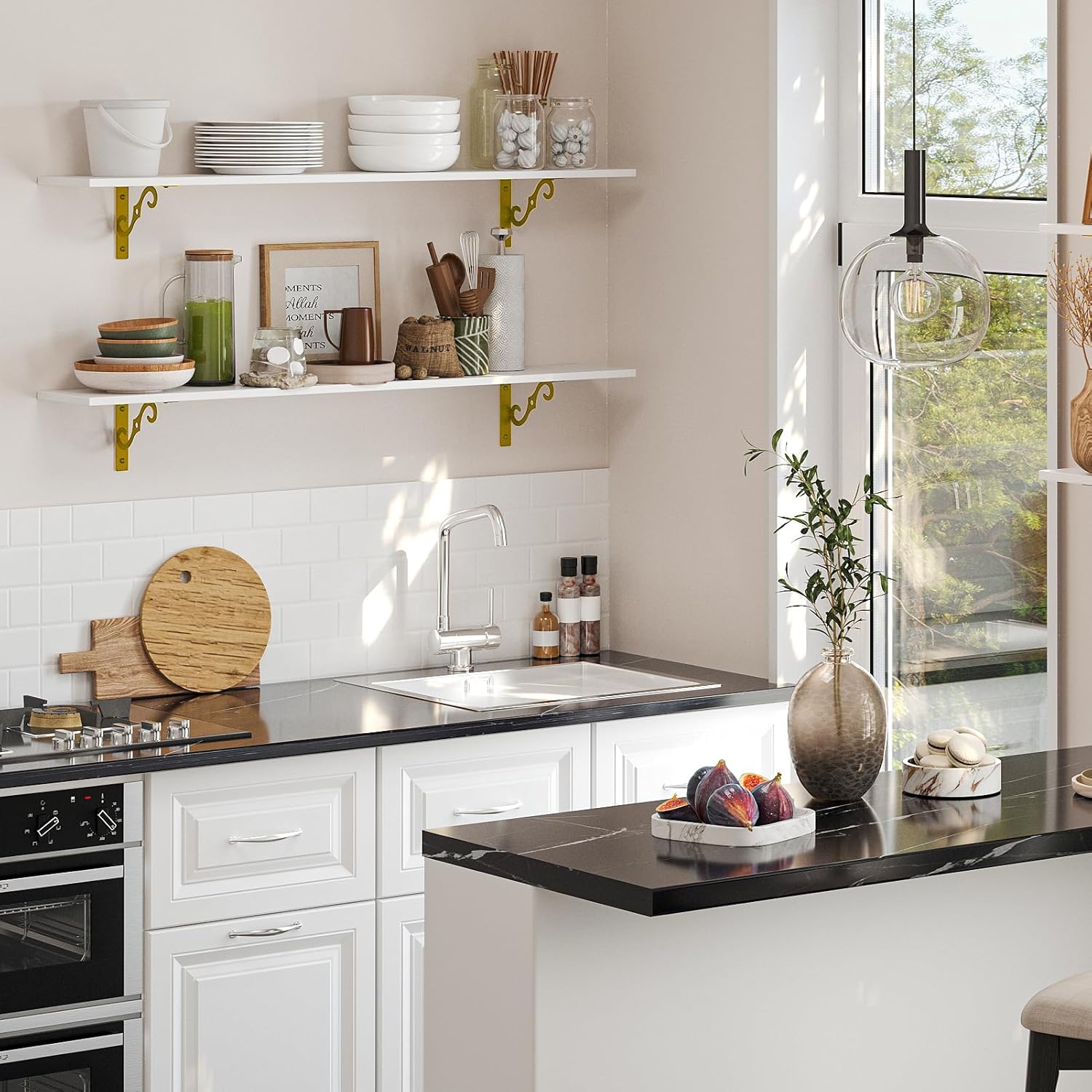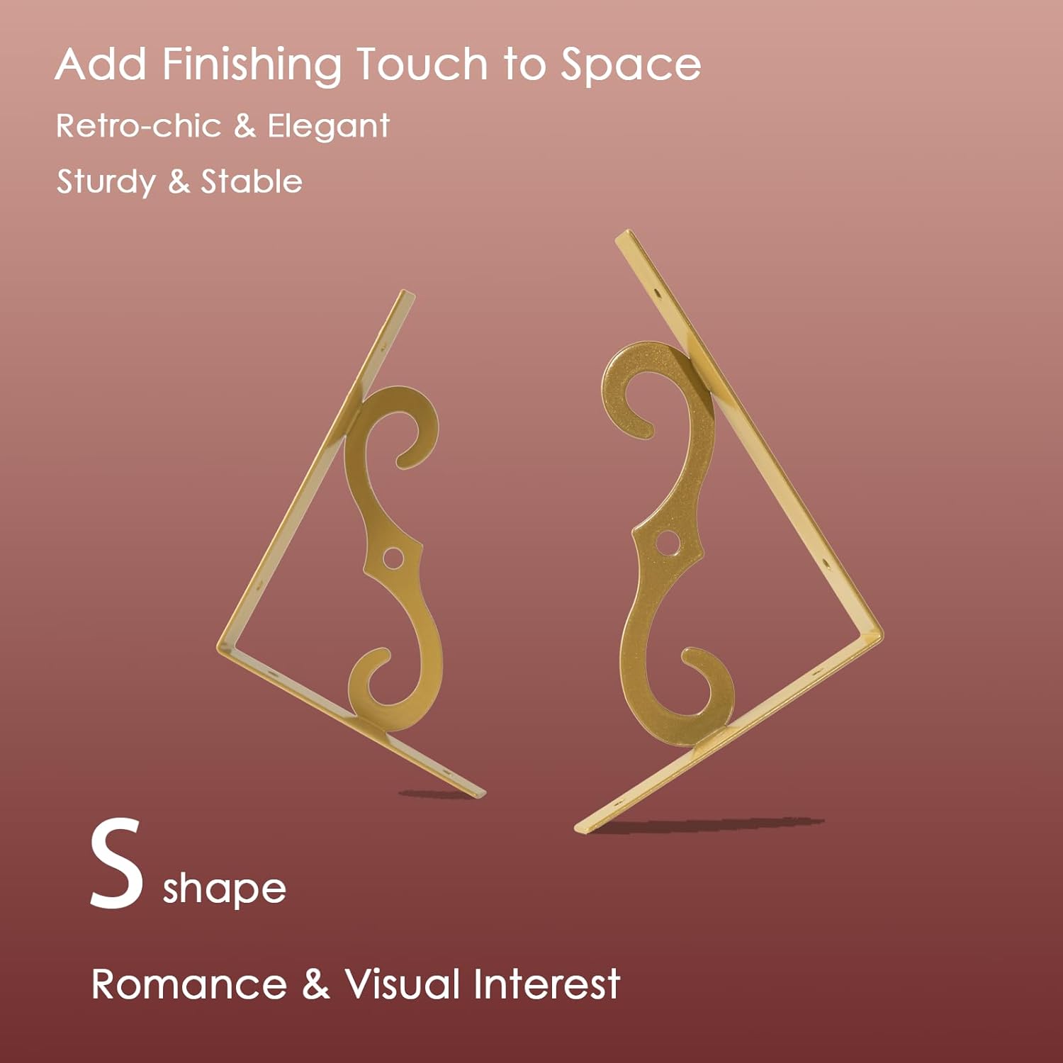 - 【Stunning Home Decor】Mid-century design adds a retro-chic vibe to your home. It combines white and gold design, exquisite S-shaped iron, making your home flaunt visual interest and romance. Play your creativity to build an eye-catching area by freely arranging these shelves