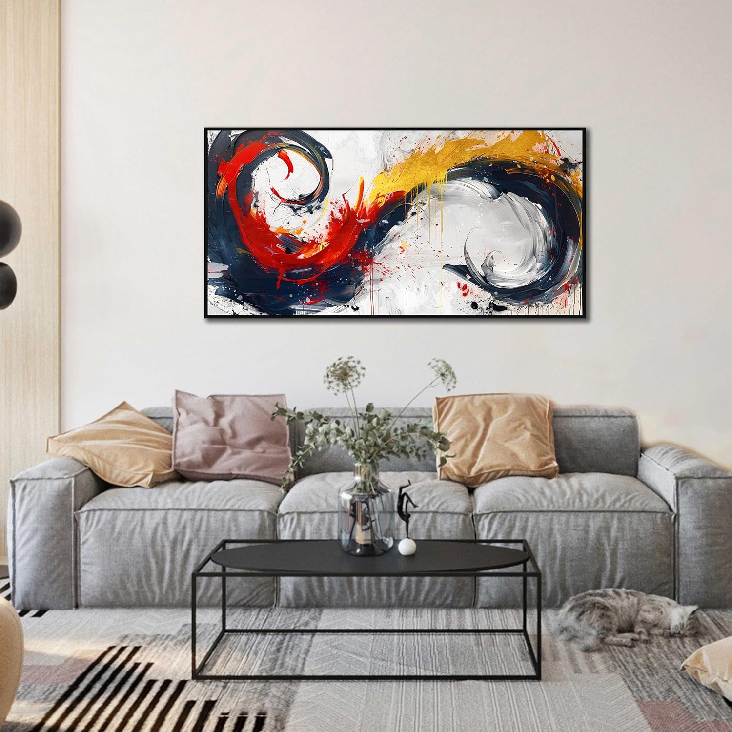 - EASY TO HANG: Each panel of canvas prints already stretched on solid wooden frames, gallery wrapped, lightweight,ready to hang. The side margins are also printed to create a particularly decorative effect. Abstract art work for living room walls,modern prints canvas wall art Added color and fun to your bedroom, living room,office, dormitory or apartment.