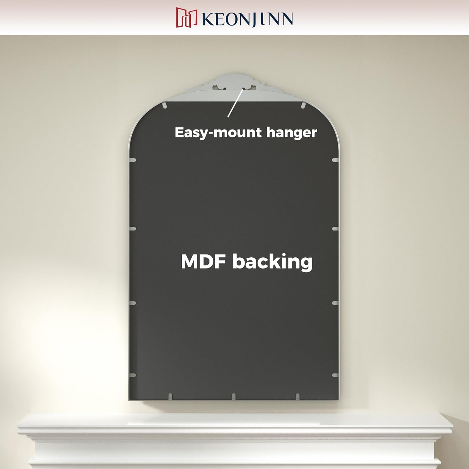 Keonjinn Vintage Mirror 24" x 36", Antique Mirrors for Wall Decor, Silver Arched Decorative Mirror for Mantle, Hallway, Living Room, Fireplace, Bedroom, Bathroom Mirror with French Cleat Mounting