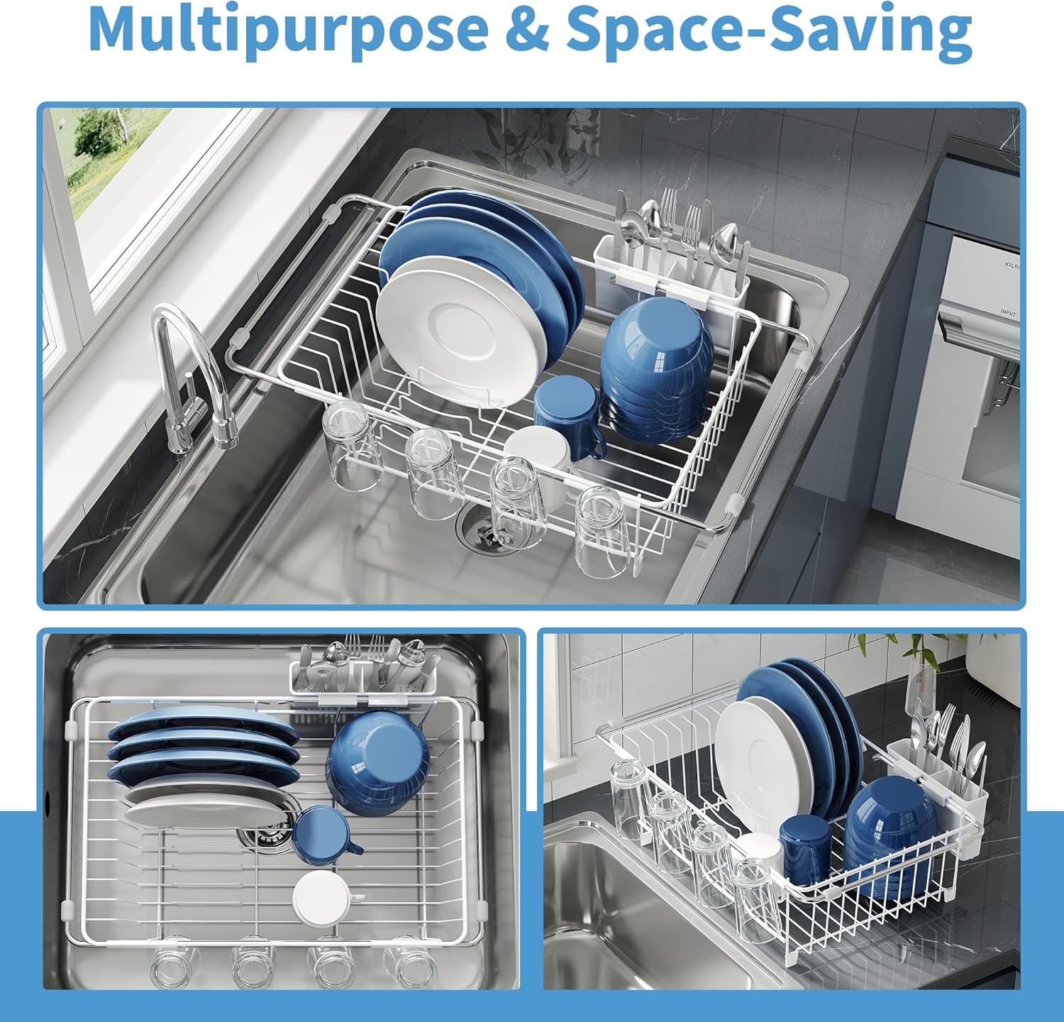 - Used for 3 Scenarios: This dish drying rack expands for use on the countertop, in-sink or over-sink