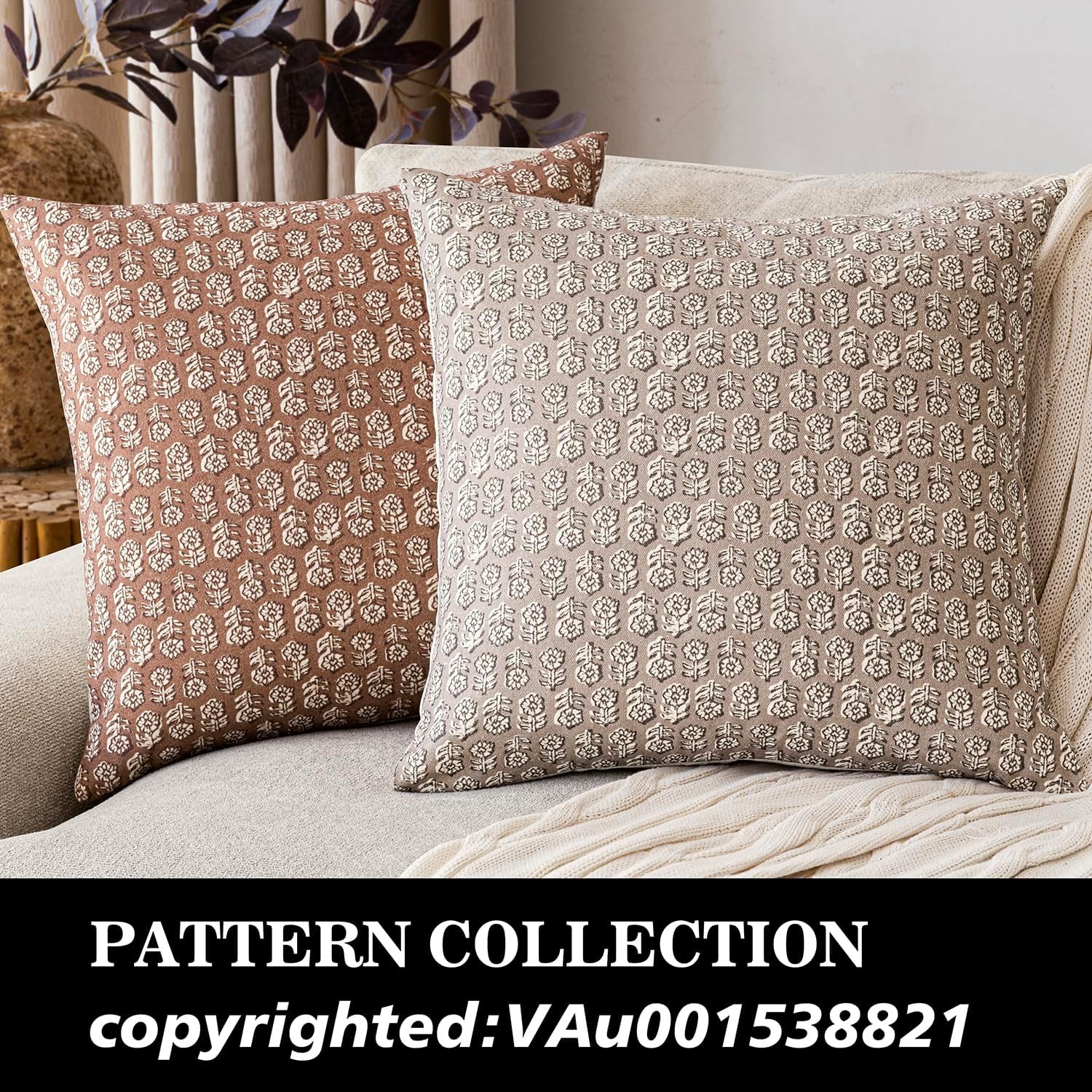 Foindtower Set of 2 Decorative Vintage Floral Print Throw Pillow Covers Neutral Farmhouse Cushion Covers Boho Home Decor for Sofa Couch Chair Bedroom Living Room Outdoor,22×22 Inch,Light Orange Brown