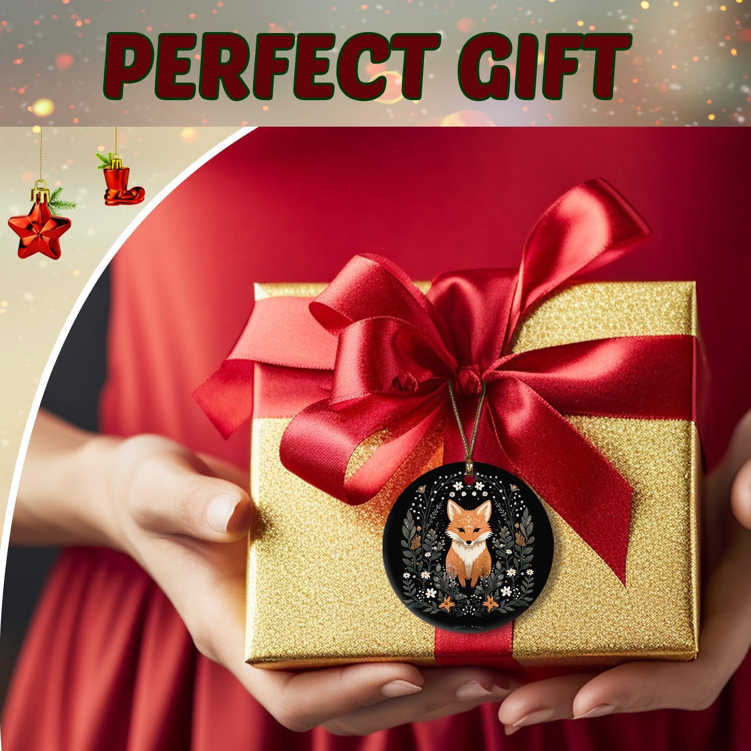 Fox Ornament, Fox Gifts for Women Girls Men,Gifts for Fox Lovers, Cottagecore Botanical Fox Ceramic Ornaments, Fox Decorative Hanging Ornament